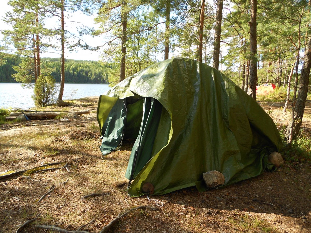 Ich hatte bei diesem Urlaub so gar nicht an Wellness gedacht, aber als unser Guide vorschlug eine Sauna zu bauen, waren wir alle dabei. Das Außenzelt vom Zelt wurde falschherum auf das Gestell gelegt und mit einem Tarp abgedeckt, dann wurden ein paar große Stein so lange ins Feuer gelegt, bis sie geglüht haben und aus ein paar Früchten des Waldes und Tee wurde ein Aufguss gekocht. Also haben wir dann mit 6 Leuten in einem kleinen Zelt gesessen, geschwitzt und danach eine frische Abkühlung im See genommen. Das war echt ein Highlight.