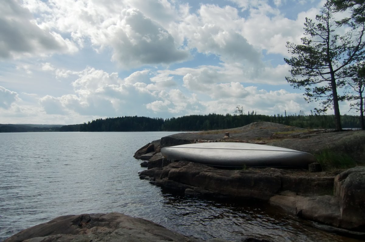 Anschließend brachen wir unser Lager ab und paddelten weiter gen Norden. Nachdem wir uns einmal verfahren haben, was 4km Umweg zur Folge hatte, gelangten wir auf den Stora Le, dessen Ufer eine sehr Abwechslungsreiche Landschaft bietet. Die Idylle am Sonntag wurde lediglich durch eine Vielzahl von Motorbooten gestört, die auf dem See ihre Kreise zogen. Allerdings leisteten uns auf dem See auch Kanadagänse Gesellschaft. Am Nachmittag schlugen wir auf Rastplatz 35 unser Lager auf und verbrachten den Rest des Tages wieder mit Essen kochen und ausspannen.