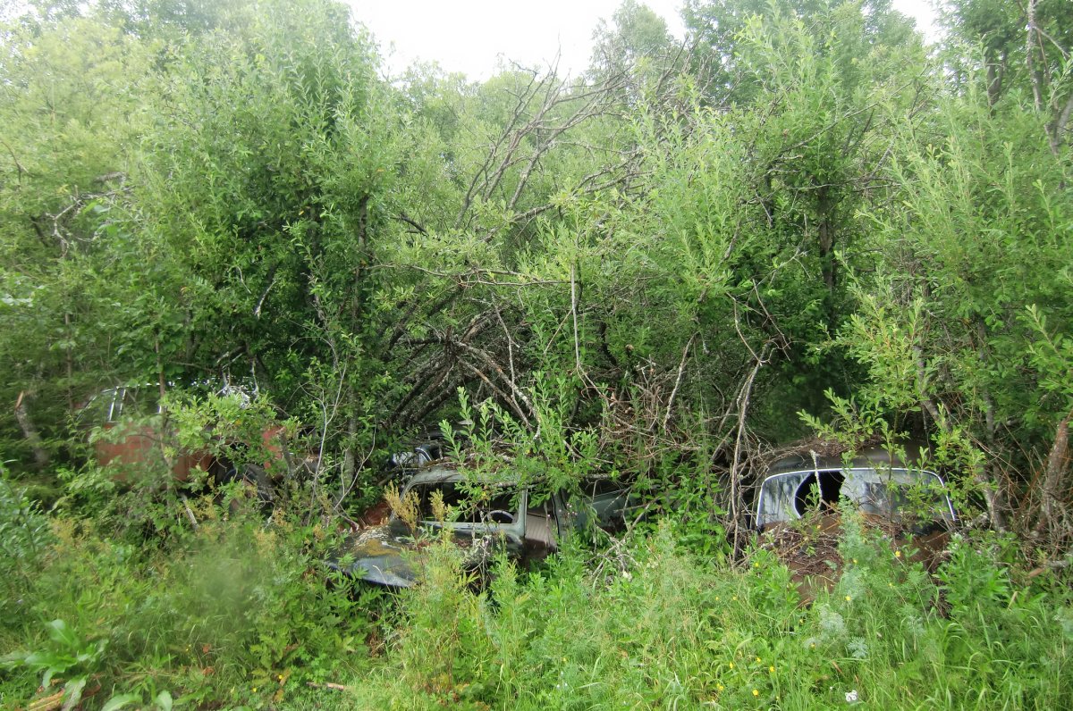Kurz nachdem wir am nächsten Morgen wieder auf dem Wasser waren, fing es an zu regnen. Trotzdem erreichten wir unser nächstes Ziel, Bastnäs, noch einigermaßen trocken. Von hier aus unternahmen wir eine Wanderung zu einem nahe gelegenen Autofriedhof. Dort liegen, mitten im Wald, etliche Autowracks aus den 50er, 60er und 70er Jahren. Der Anblick ist sehr skurril. Der Plan, anschließend weiter nach Norwegen zu paddeln fiel wegen des Regens buchstäblich ins Wasser. Stattdessen suchten wir uns nach kurzer Weiterfahrt in der Nähe einen Platz, wo wir auch direkt unser Tarp und Zelt aufbauten und uns abends mit einer Suppe wieder etwas aufwärmten. Dieser Tag war zum Glück der einzige, der komplett verregnet war.