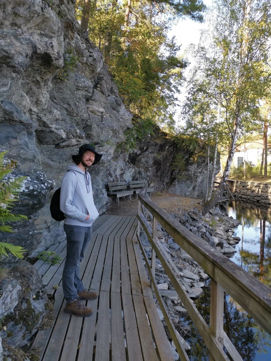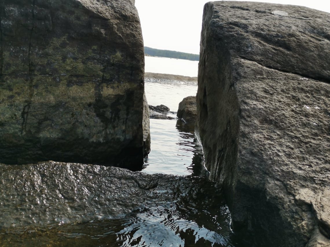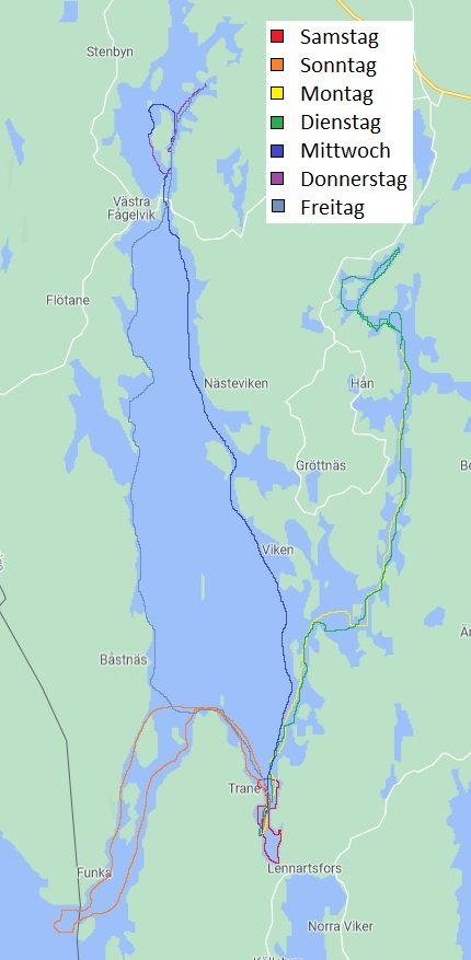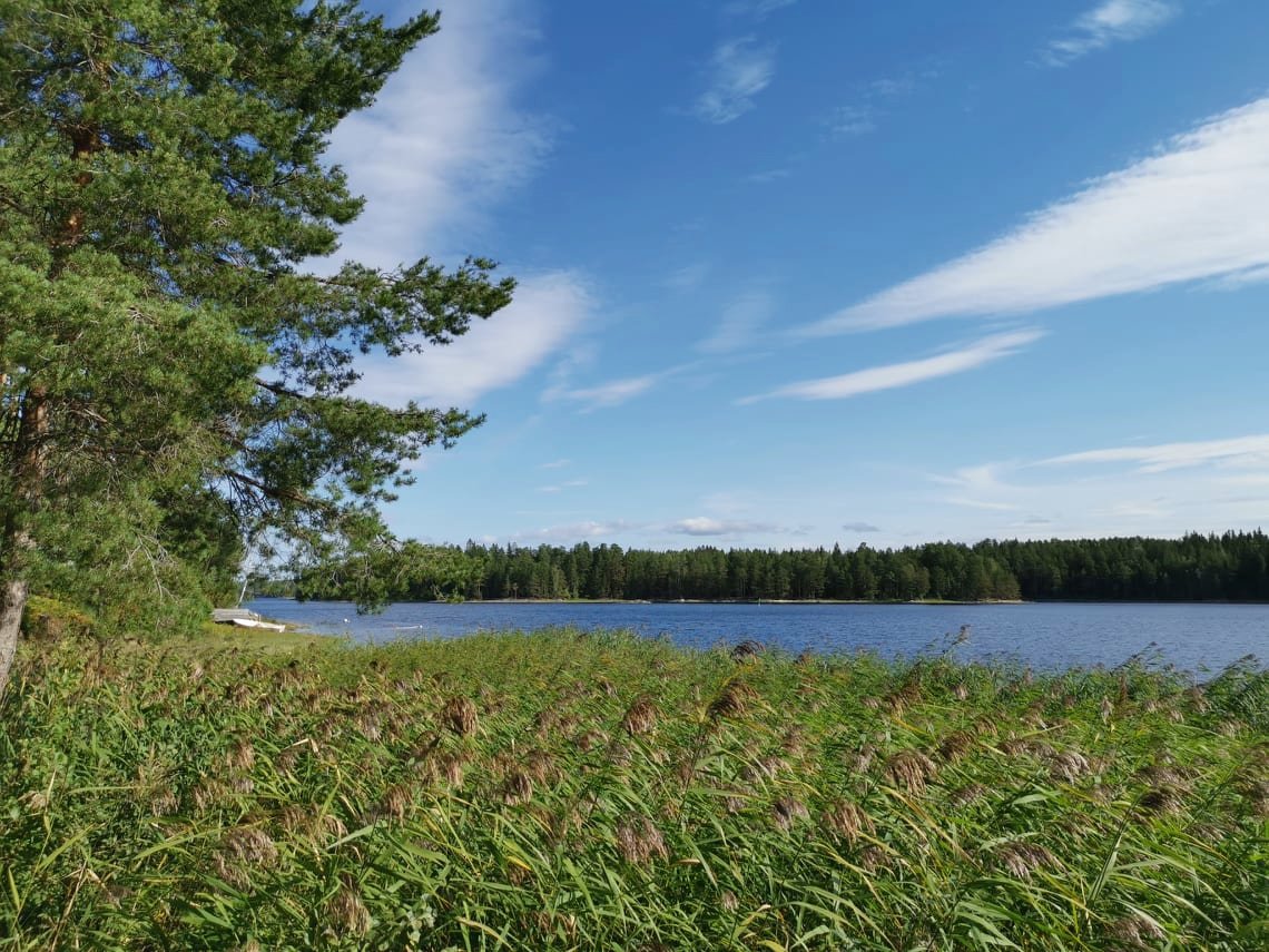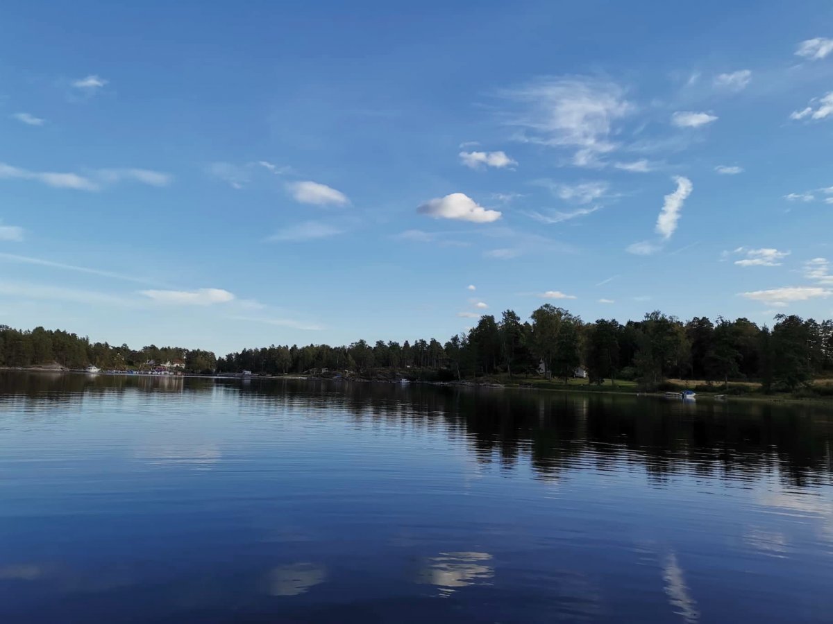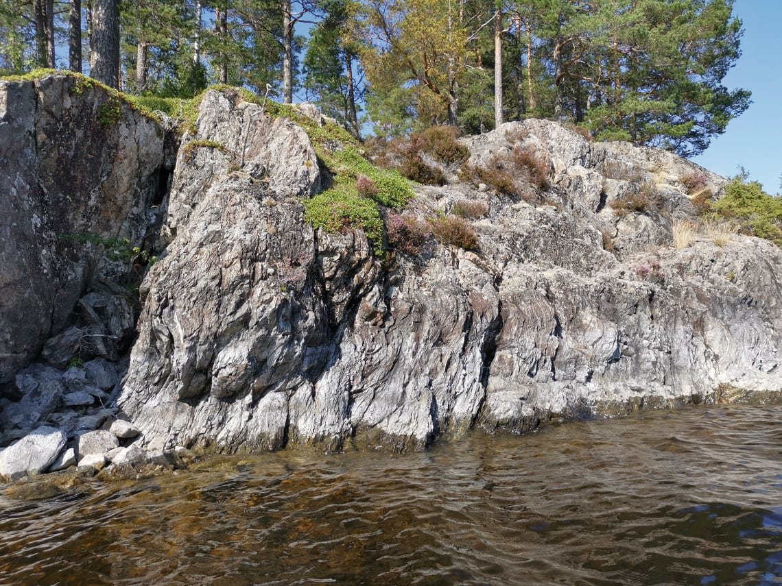 Die weitere Fahrt im Bus war vor allem davon geprägt, eine geeignete Schlafposition zu finden, um zumindest ein paar Stunden schlummern zu können. Dies gelang auch, wurde jedoch durch verschiedene Störungen unterbrochen. Darunter beispielsweise ein laut meckernder Scandi, weil die Bustoilette verstopft war und (nach seinen Aussagen) „der ganze Bus unter Wasser“ stand. Dies führte dazu, dass wir vor der zweiten Fährüberfahrt erst einmal ein wenig standen, um das Wasser wieder loszuwerden. Die „Frühstückspause“ an einer Tankstelle konnten wir leider nicht für ein Frühstück nutzen, da drei oder vier Busse gleichzeitig ankamen, sodass die Schlange viel zu lang war, um noch etwas zu ergattern. Zudem begrüßte Schweden uns mit Kälte, sodass ich froh war, als es endlich weiterging. Am Lager Höglund angekommen, mussten wir erst ein wenig warten, bis unsere Hütte am See fertig war. Dann wurde uns diese gezeigt, wir bekamen die Essenstonne und die Ausrüstung und nachdem wir uns ein wenig eingerichtet hatten, genossen wir zuallererst ein gemütliches Frühstück auf unserer kleinen Terrasse. Nachdem wir den ersten Tag damit verbrachten, uns an das Kanu zu gewöhnen und die Gegend ein wenig zu erkunden, war das Ziel des nächsten Tages, nach Norwegen zu reisen. Wenn man schon mal die Gelegenheit hat, sich an einem Tag in zwei unterschiedlichen Ländern aufzuhalten, möchte man das schließlich auch nutzen. Die Fahrt war lang (vor allem weil wir am Abend wieder an der Hütte ankommen wollten), aber definitiv lohnenswert. Zudem konnten wir einige Wanzen vorm Ertrinken retten und fanden eine „Heidelbeerinsel“, die uns leckere Heidelbeerpfannkuchen bescherte. Für die darauffolgenden Tage, sprich Montag und Dienstag, hatten wir Größeres vor: Es sollte eine längere Tour werden mit Übernachtung im Zelt oder Dano-Unterstand. Wir besorgten uns also für zwei Nächte eine Nature Card im Camp und fuhren los. Die Flötefjorden sollten es werden. Dort wollten wir am liebsten eine der vielen Danos nutzen, um zu übernachten und natürlich die Gegend erkunden. Mein Freund hatte, obwohl dies bereits von mehreren Quellen widerlegt wurde, weiterhin die Hoffnung, dass wir irgendwo dort einen Wasserfall sehen, sodass wir jeden möglichen Winkel erkunden wollten. Nach einer langen Fahrt und einer ewigen Sucherei nach einer Dano, mussten wir uns leider damit abfinden, kein Stockbrot machen zu können und suchten uns einen Zeltplatz auf einer sehr kleinen und schnuckeligen Insel. Zunächst war noch nicht sicher, ob dies tatsächlich unser Schlafplatz wird, doch nachdem eine der Taschen samt Wechselunterwäsche Lust hatte, baden zu gehen (war ja auch sehr heiß, daher taten wir es ihr wenig später gleich), ließen wir uns dort nieder und nutzten die Ausrüstung, um uns eine Wäscheleine zu bauen. Die Nacht war kalt, sodass so manche Schlafsackwahl noch einmal überdacht wurde und zukünftig der Zwiebellook herhalten musste. Am nächsten Tag ging die Suche nach Wasserfällen weiter, führte uns allerdings nur zu unerwarteten Umtragestellen, fast ausgetrockneten Flüssen und anderen Sackgassen. Die Flüsse waren zwar sehr idyllisch und voller Fische, Libellen, Enten und Seerosen, brachten uns aber nicht weiter.