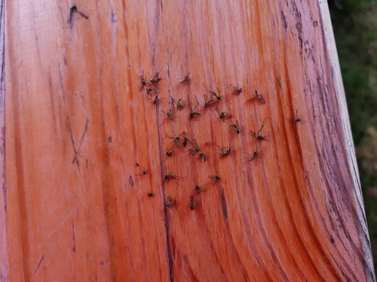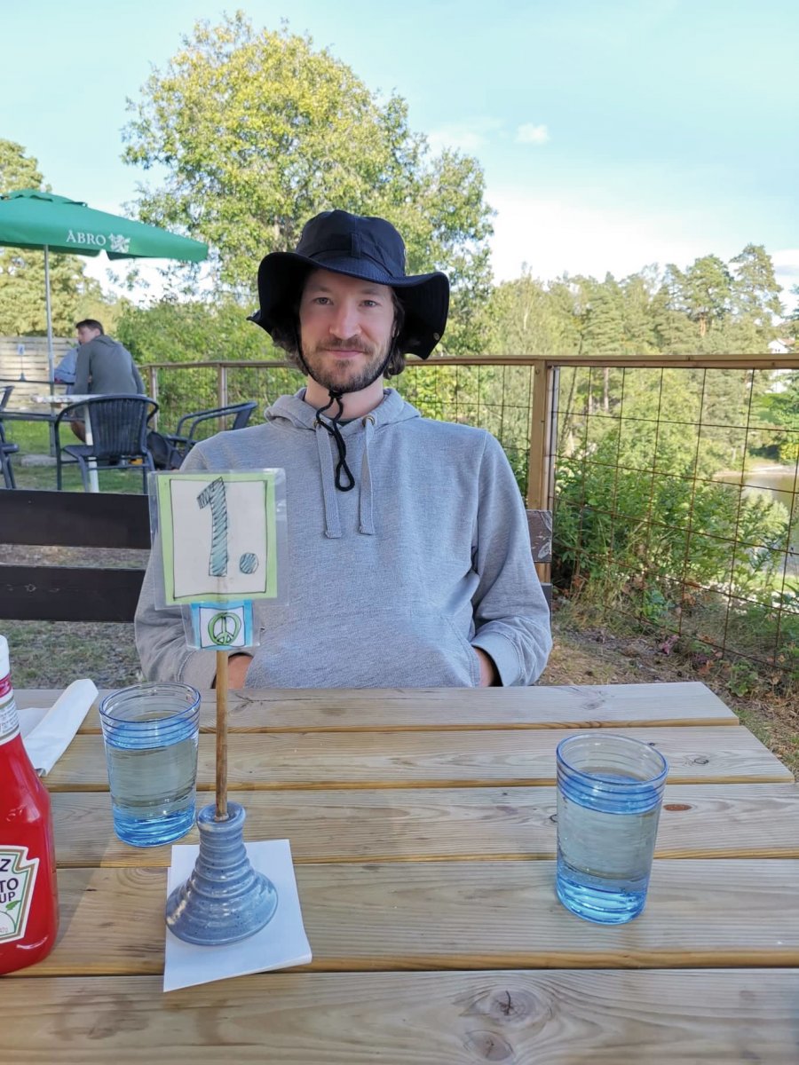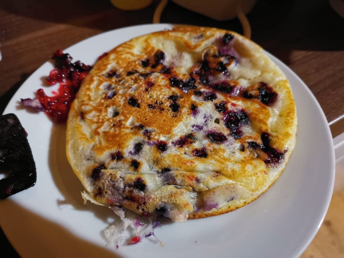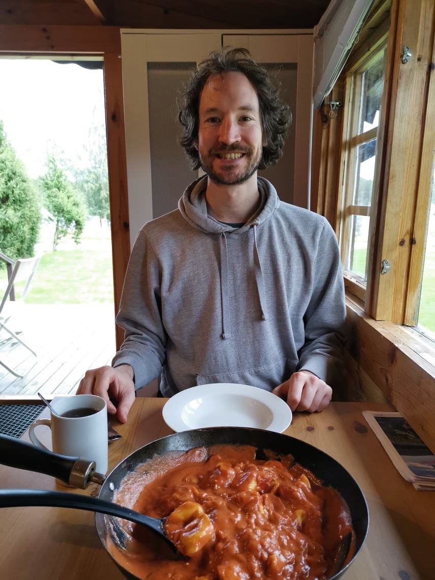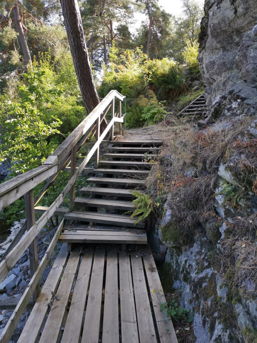Die weitere Fahrt im Bus war vor allem davon geprägt, eine geeignete Schlafposition zu finden, um zumindest ein paar Stunden schlummern zu können. Dies gelang auch, wurde jedoch durch verschiedene Störungen unterbrochen. Darunter beispielsweise ein laut meckernder Scandi, weil die Bustoilette verstopft war und (nach seinen Aussagen) „der ganze Bus unter Wasser“ stand. Dies führte dazu, dass wir vor der zweiten Fährüberfahrt erst einmal ein wenig standen, um das Wasser wieder loszuwerden. Die „Frühstückspause“ an einer Tankstelle konnten wir leider nicht für ein Frühstück nutzen, da drei oder vier Busse gleichzeitig ankamen, sodass die Schlange viel zu lang war, um noch etwas zu ergattern. Zudem begrüßte Schweden uns mit Kälte, sodass ich froh war, als es endlich weiterging. Am Lager Höglund angekommen, mussten wir erst ein wenig warten, bis unsere Hütte am See fertig war. Dann wurde uns diese gezeigt, wir bekamen die Essenstonne und die Ausrüstung und nachdem wir uns ein wenig eingerichtet hatten, genossen wir zuallererst ein gemütliches Frühstück auf unserer kleinen Terrasse. Nachdem wir den ersten Tag damit verbrachten, uns an das Kanu zu gewöhnen und die Gegend ein wenig zu erkunden, war das Ziel des nächsten Tages, nach Norwegen zu reisen. Wenn man schon mal die Gelegenheit hat, sich an einem Tag in zwei unterschiedlichen Ländern aufzuhalten, möchte man das schließlich auch nutzen. Die Fahrt war lang (vor allem weil wir am Abend wieder an der Hütte ankommen wollten), aber definitiv lohnenswert. Zudem konnten wir einige Wanzen vorm Ertrinken retten und fanden eine „Heidelbeerinsel“, die uns leckere Heidelbeerpfannkuchen bescherte. Für die darauffolgenden Tage, sprich Montag und Dienstag, hatten wir Größeres vor: Es sollte eine längere Tour werden mit Übernachtung im Zelt oder Dano-Unterstand. Wir besorgten uns also für zwei Nächte eine Nature Card im Camp und fuhren los. Die Flötefjorden sollten es werden. Dort wollten wir am liebsten eine der vielen Danos nutzen, um zu übernachten und natürlich die Gegend erkunden. Mein Freund hatte, obwohl dies bereits von mehreren Quellen widerlegt wurde, weiterhin die Hoffnung, dass wir irgendwo dort einen Wasserfall sehen, sodass wir jeden möglichen Winkel erkunden wollten. Nach einer langen Fahrt und einer ewigen Sucherei nach einer Dano, mussten wir uns leider damit abfinden, kein Stockbrot machen zu können und suchten uns einen Zeltplatz auf einer sehr kleinen und schnuckeligen Insel. Zunächst war noch nicht sicher, ob dies tatsächlich unser Schlafplatz wird, doch nachdem eine der Taschen samt Wechselunterwäsche Lust hatte, baden zu gehen (war ja auch sehr heiß, daher taten wir es ihr wenig später gleich), ließen wir uns dort nieder und nutzten die Ausrüstung, um uns eine Wäscheleine zu bauen. Die Nacht war kalt, sodass so manche Schlafsackwahl noch einmal überdacht wurde und zukünftig der Zwiebellook herhalten musste. Am nächsten Tag ging die Suche nach Wasserfällen weiter, führte uns allerdings nur zu unerwarteten Umtragestellen, fast ausgetrockneten Flüssen und anderen Sackgassen. Die Flüsse waren zwar sehr idyllisch und voller Fische, Libellen, Enten und Seerosen, brachten uns aber nicht weiter.