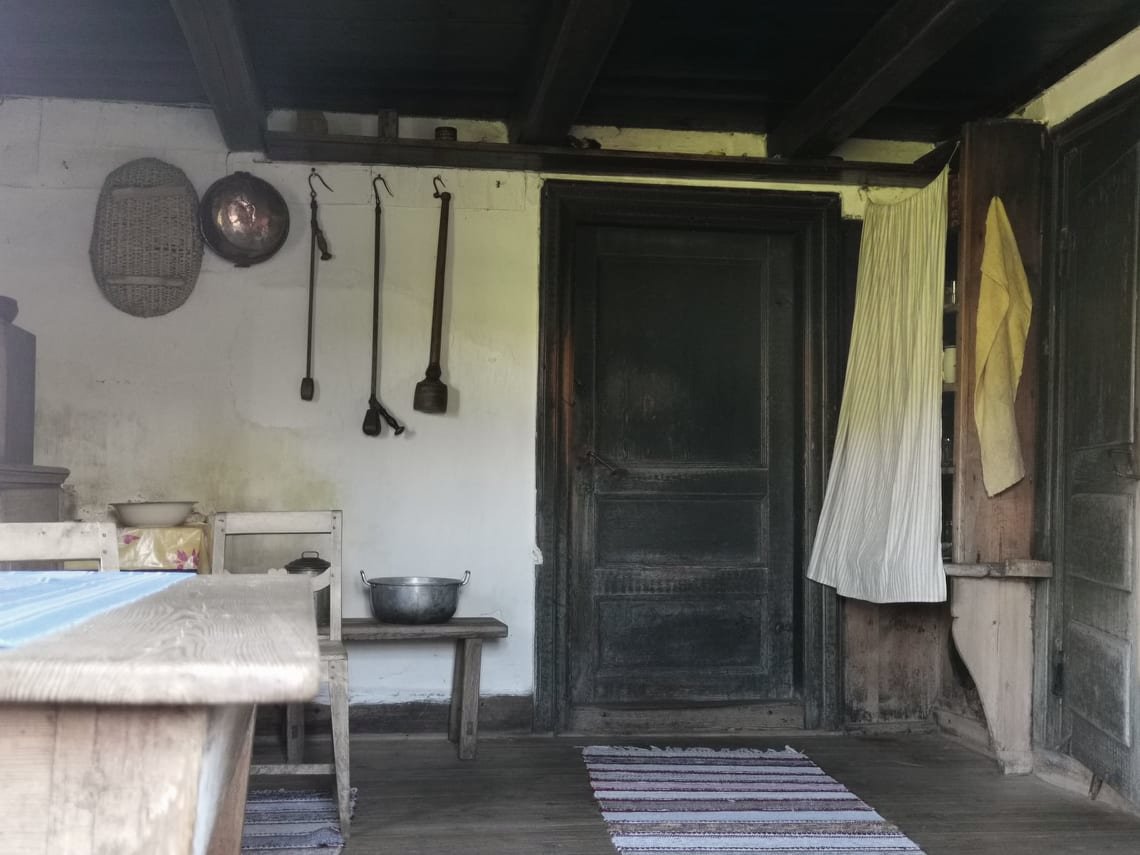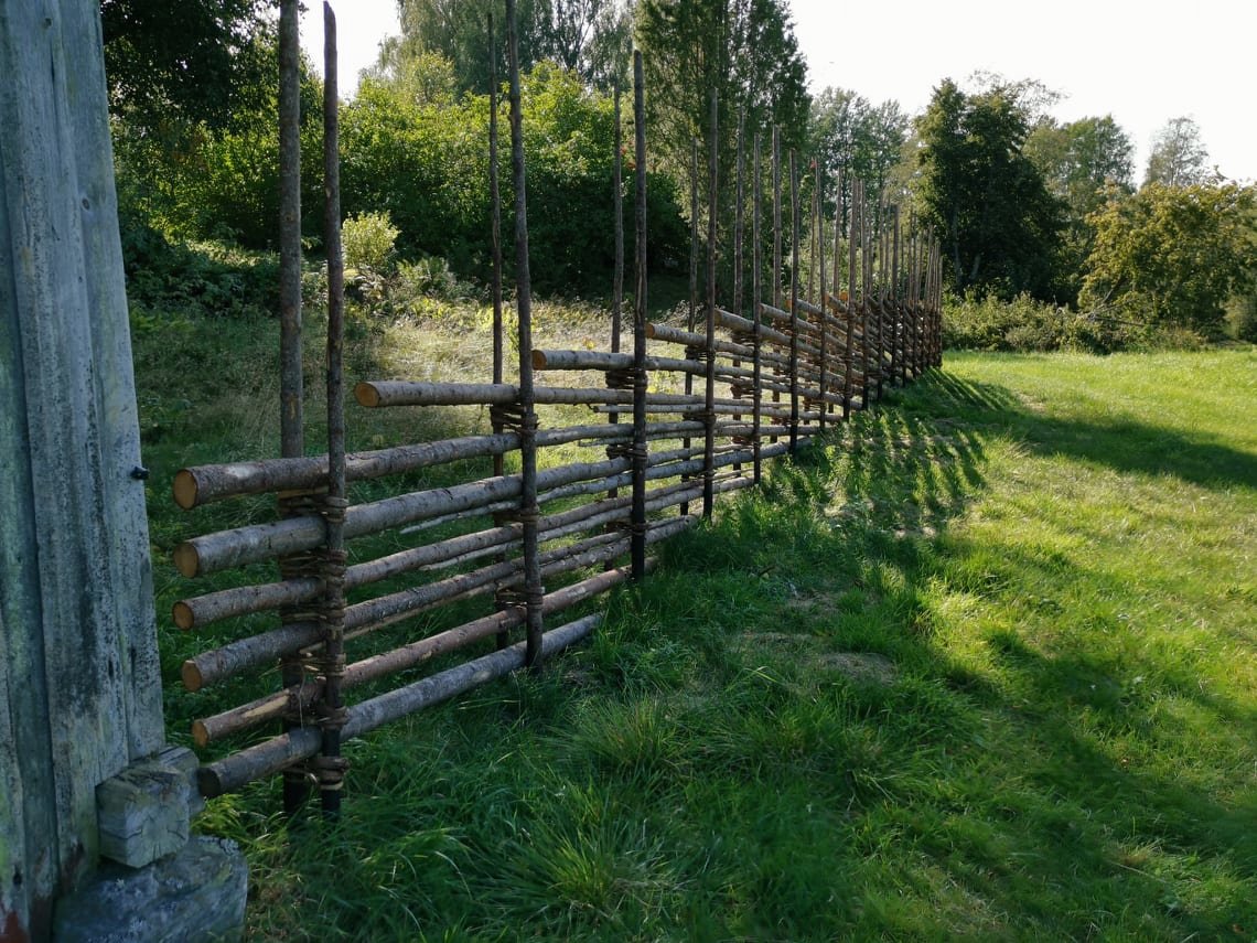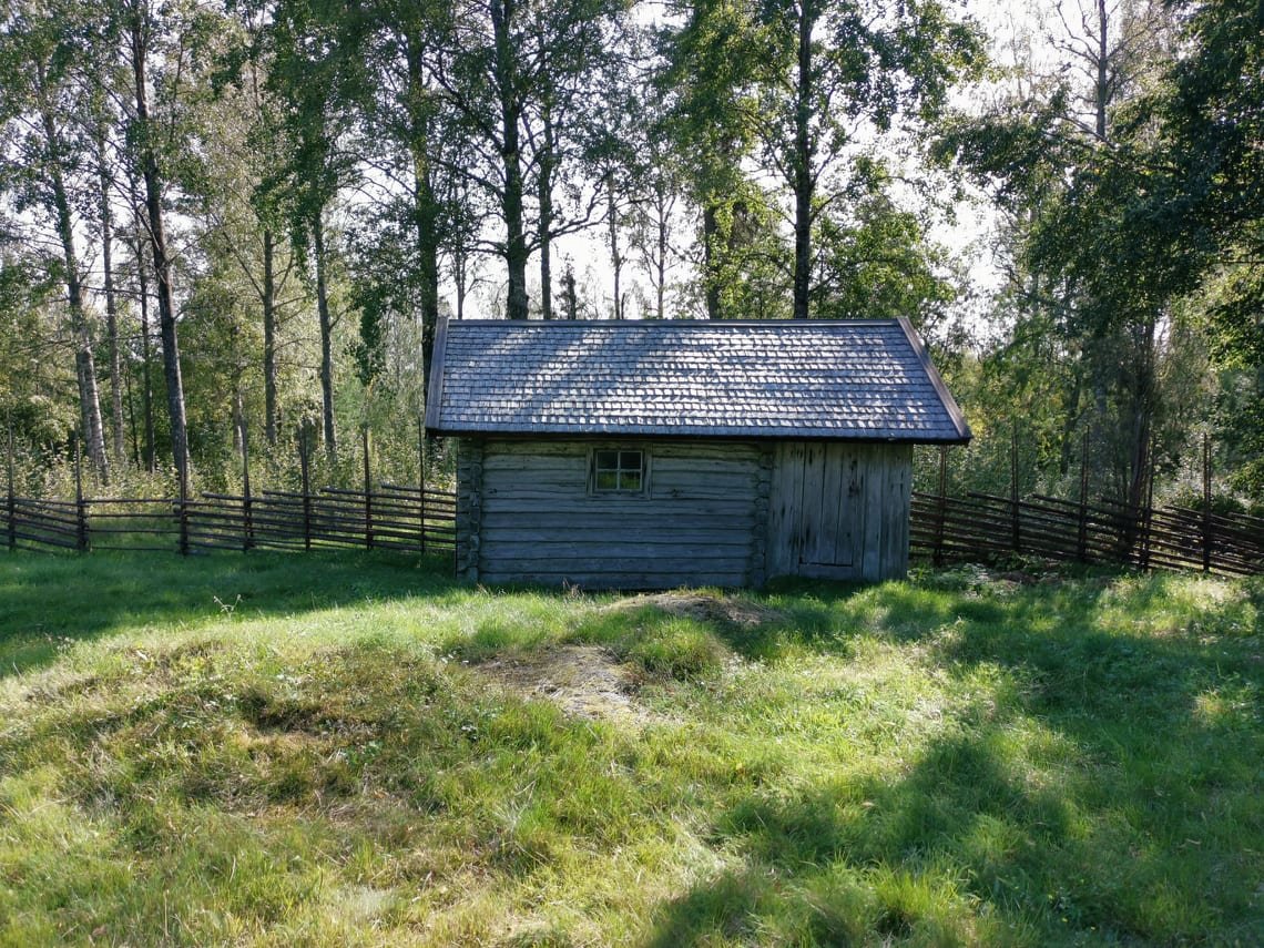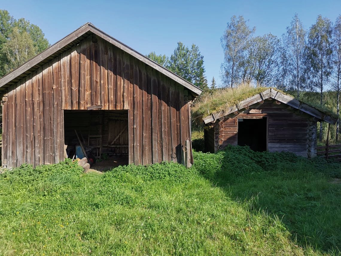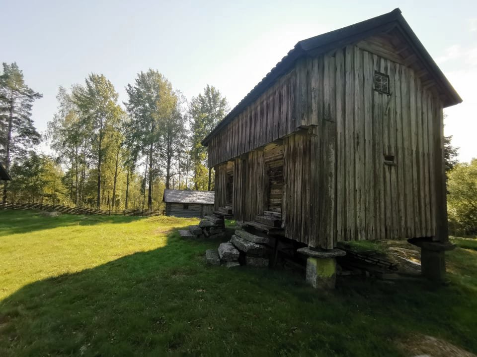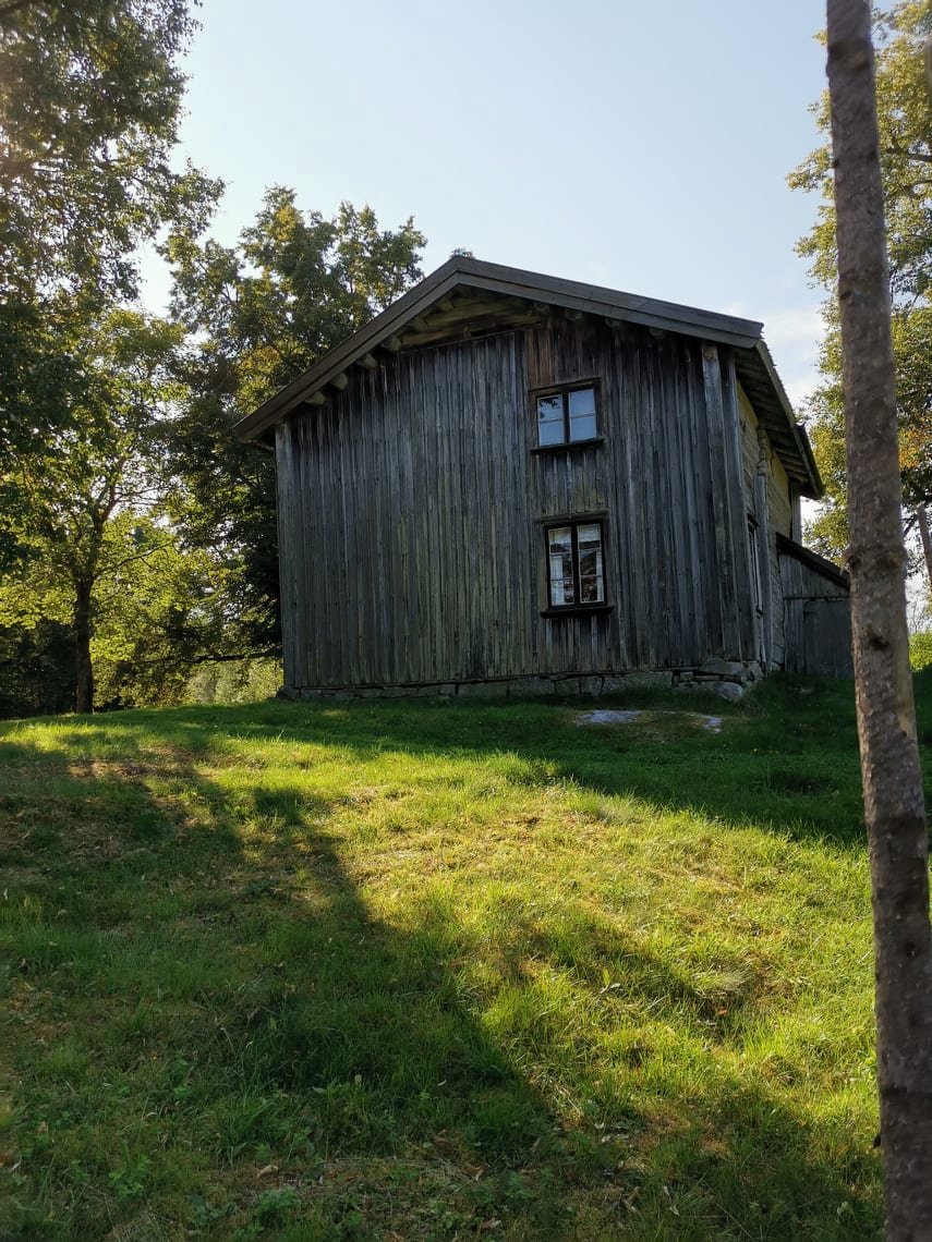 Wieder ging die Suche nach einer Dano los, wieder war diese vergebens, sodass wir schlussendlich doch den ganzen Weg zurück zu unserer Hütte fuhren, um dort zu schlafen. Etwas kaputt aber mit vielen Eindrücken und Erlebnissen vom Tag, ließen wir uns früh ins Bett fallen. Am Mittwoch ging es wieder los, mit neuer Nature Card im Gepäck und dem Vorhaben, diesmal Richtung Norden zu fahren. Die erste Etappe führte uns auf eine Insel in Höhe von Dusserud, wo wir erneut das Zelt aufschlugen und die letzten Sonnenstrahlen genossen. Die Fahrt dorthin war windig, die Wellen waren hoch und wir konnten unsere ganze Muskelkraft unter Beweis stellen. Auch hier gab es einige Zwischenfälle. So löste mein Freund bei dem Versuch, uns mit dem Campingkocher Abendessen zu kochen, durch einen Siedeverzug beim Anzünden des Kochers fast einen Waldbrand aus (versengte aber nur seine Hose) und ich rettete einen kleinen Fisch, der vor lauter Übermut bei der Mückenjagd, ans Ufer gesprungen war. Am nächsten Morgen begrüßte uns ein (ziemlich großer) toter Fisch am Rand des Ufers, den mein Freund komischerweise nicht als Frühstück verzehren wollte (zugegeben, er sah aus, als sei er schon länger tot). Die Dano die wir uns für die nächste Übernachtung ausgeguckt hatten, war nur 10 min entfernt, doch als wir dort ankamen, waren leider schon wieder neue Besucher dort, die uns klar zu verstehen gaben, dass sie uns dort nicht haben wollten. Etwas genervt und gefrustet machten wir uns auf den Weg nach einer Alternative und fanden zum Glück auch ziemlich schnell etwas. Dort gab es einen Unterstand, zwei Feuerstellen und eine Toilette. Zudem war der Ort Dusserud nicht weit weg, wo wir uns eine der auf der Karte vermerkten Sehenswürdigkeiten ansehen wollten. Nachdem ich mir beim Versuch etwas zu schnitzen (was macht man auch sonst so im Urlaub), tief in den Daumen geschnitten hatte und mein Freund mir fast einen Baumstamm an den Kopf geknallt hatte, weil er gestolpert ist (sehr lustiger Anblick in meiner Erinnerung), entschieden wir uns, uns auf den Weg zur Sehenswürdigkeit zu machen und die Überlebenskunst in der Wildnis kurz zu pausieren. Dem Angriff der Hirschlausfliegen konnten wir zum Glück entkommen (ekelhafte Biester) und gelangten ziemlich bald zum Ögårn i Dusserud. Dabei handelte es sich um einen alten Bauernhof aus dem 18. Jahrhundert.