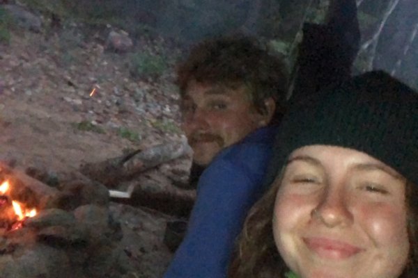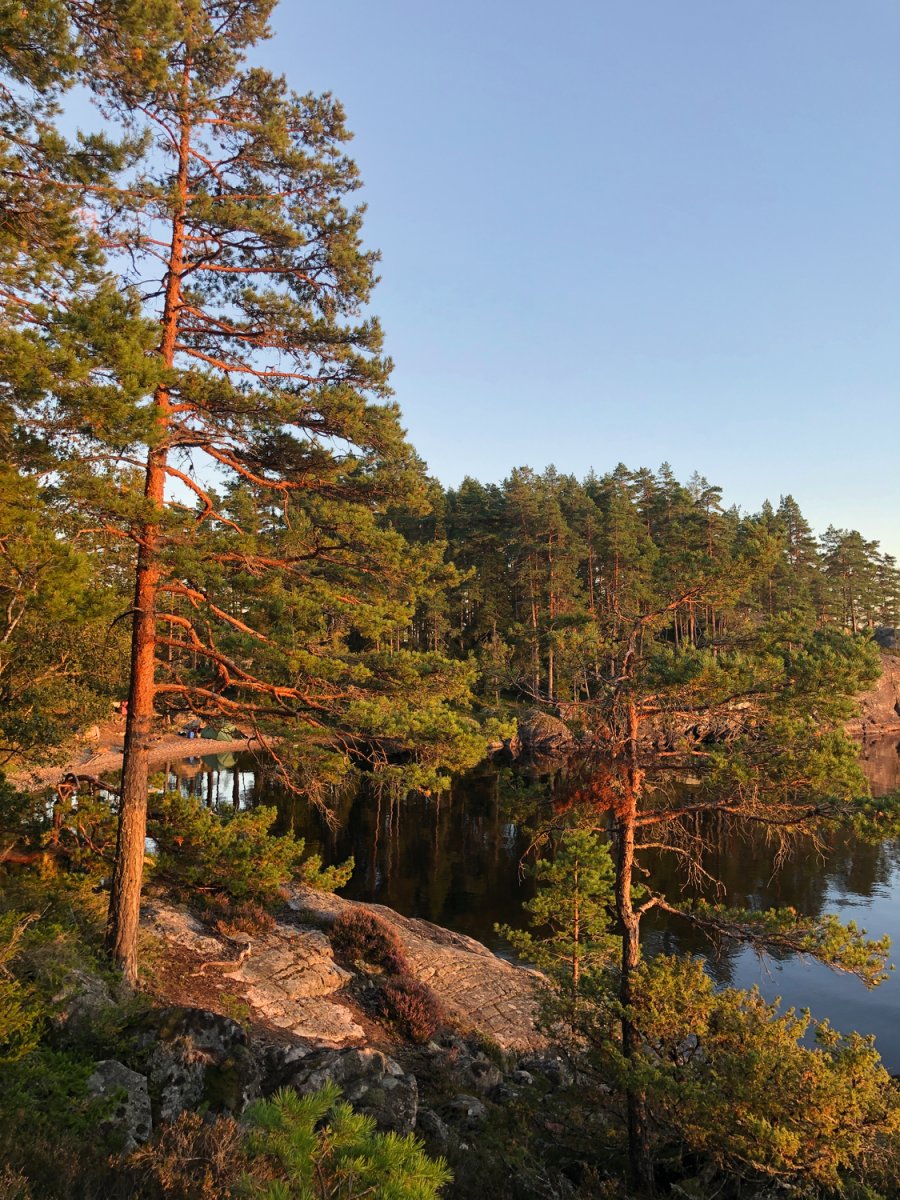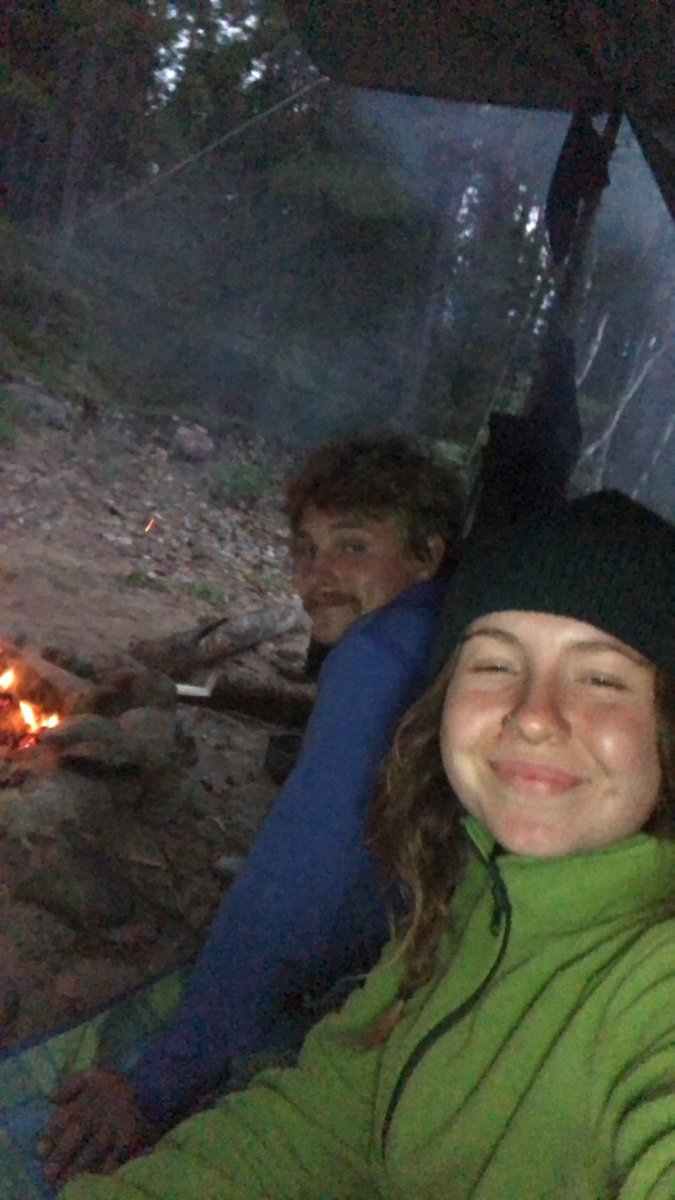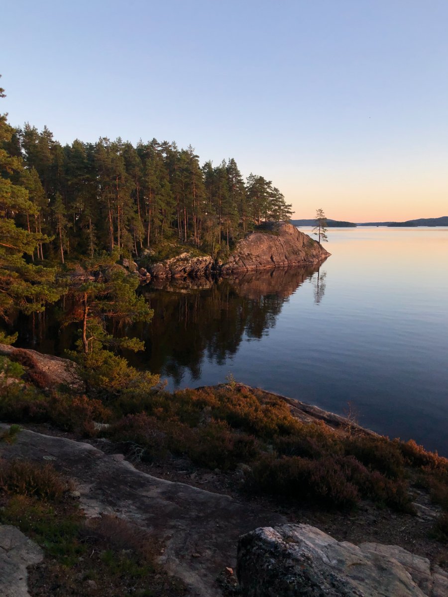 Am Rastplatz 19 fanden wir einen Sandstrand mit perfektem Blick auf den Sonnenuntergang. Wir stellten das Zelt auf, sammelten Feuerholz und einige Blaubeeren. Nach einem entspannten Nachmittag in der Sonne genossen wir abends Tofu mit Tomaten und grillten Blaubeerbrot als Nachtisch. Der Tag endete friedlich, während die Sonne im Meer versank und die Dunkelheit den Strand umhüllte. Später saßen wir am Lagerfeuer, vertieft in schöne Gespräche. Als es dann kalt und windig wurde kuschelten wir uns ins Zelt.