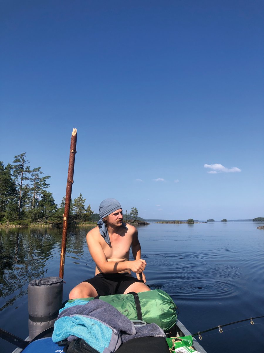 Leider musste Leon bald zurückkehren, da der Regen heftiger wurde und ein Sturm aufzog. Etwas enttäuscht, dass der Fischfang erfolglos blieb, fanden wir dennoch Trost, als uns ein weiterer Scandtrack-Teilnehmer, der ebenfalls auf Insel 19 campierte, zwei große Barsche anbot. Wir nahmen das Angebot dankbar an und konnten kaum glauben, wie großzügig das Schicksal uns doch beschenkte.
