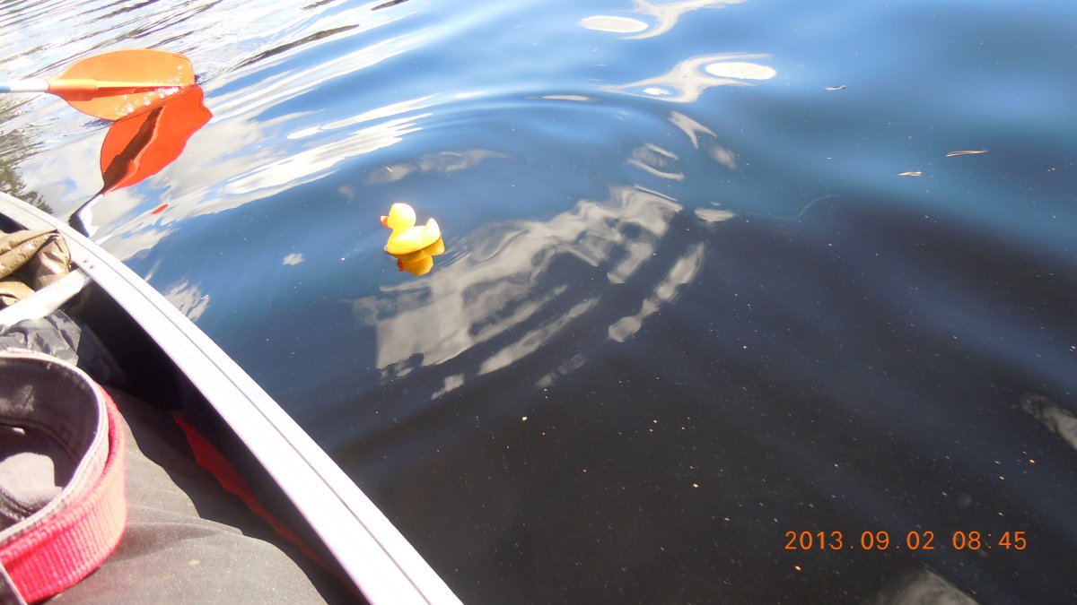 Nach dem wir nun das Kanu beladen hatten, mussten wir es erstmal ins Wasser kriegen, denn wir hatten den dummen Anfängerfehler gemacht und das Kanu noch halb an Land beladen… Aber Tajo schaffte es das Teil hochzuheben und möglichst schonend ins Wasser zu schieben, sodass wir dann vom Steg aus einsteigen konnten. So, geschafft, dachten wir uns… Aber eigentlich ging es ja grade erst los. Jetzt mussten wir uns auch schnell überlegen in welche Richtung wir lospaddeln und nach einem sehr flüchtigen Blick auf die Karte entschieden wir uns für eine Tour, auf der wir zwar nicht die gleiche Strecke würden zurückpaddeln müssen, aber an 2 Stellen mehr als 2 km das Kanu würden umtragen müssen. Dies sollte uns jedoch erst ein paar Tage später auffallen… Einen Kanuwagen hatten wir schlauerweise als unnötig betrachtet. Nun ja, dazu später mehr…