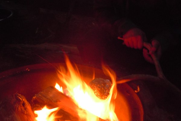 Nach diesem ganzen Backen (nebenbei haben wir natürlich noch Holz gesägt und gehackt, zwei Feuer am Laufen gehalten und Abendessen gekocht…) waren wir ziemlich erschöpft. Wir saßen nur noch am Feuer und haben Apfelkuchen gegessen, und die Sterne angeschaut und entspannt. Bevor wir dann am Feuer eingeschlafen sind, sind wir schnell ins Zelt gegangen und haben dort weitergeschlafen.