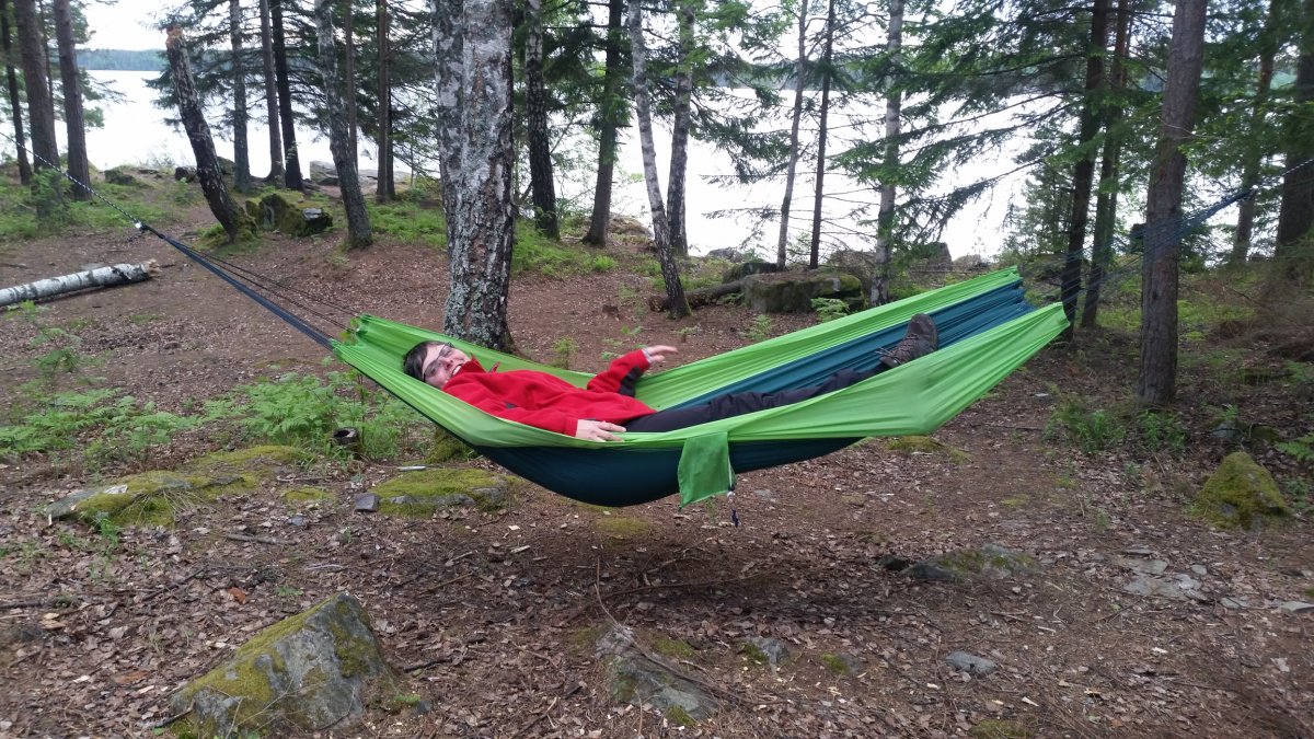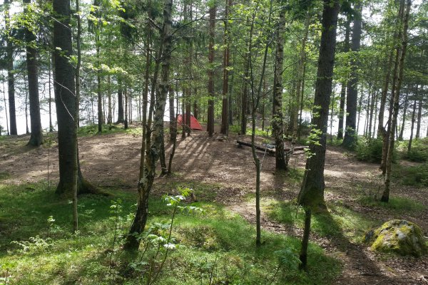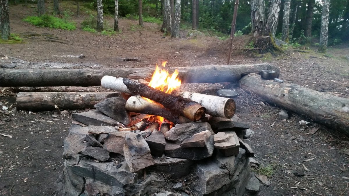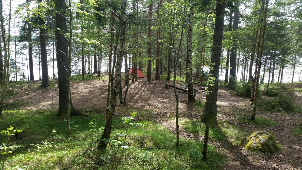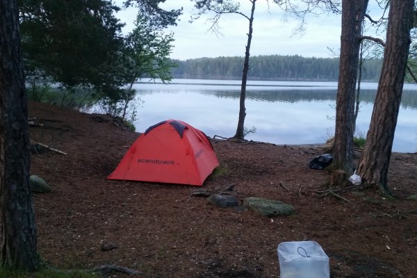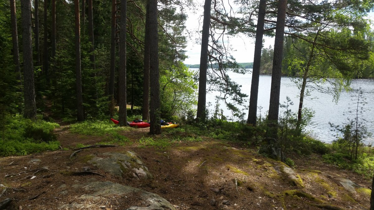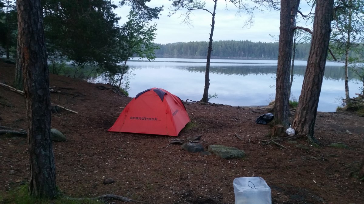 Nach einer komfortablen ersten Nacht im Zelt, einem heißen Kaffee hieß es Abschied nehmen von Greaön. Nachdem die Ausrüstung wieder in den Booten verstaut war, ging es bei sonniger Windstille hinaus auf den Lelång in nördliche Richtung. Unterbrochen von ausgiebigen Pausen mit Spaziergängen gelangten wir am Ende des Tages zur Insel Hallön und entschlossen uns für den Dano-Lagerplatz 64. Dort gab es dann etwas mehr Mücken; doch bei weitem nicht so viele, wie ich vor der Reise befürchtet hatte. Für unsere Verhältnisse als Anfänger waren mir heute sehr weit gefahren und genossen erneut das warme Lagerfeuer und die Stille der schwedischen Natur.