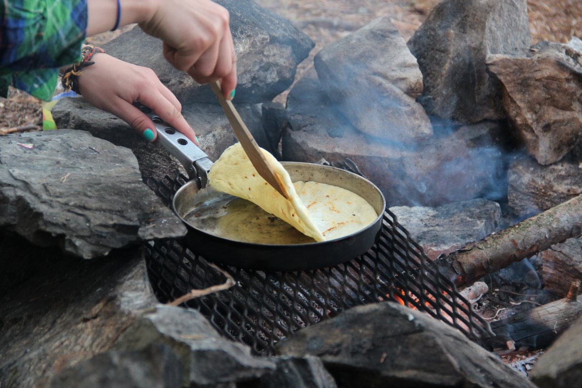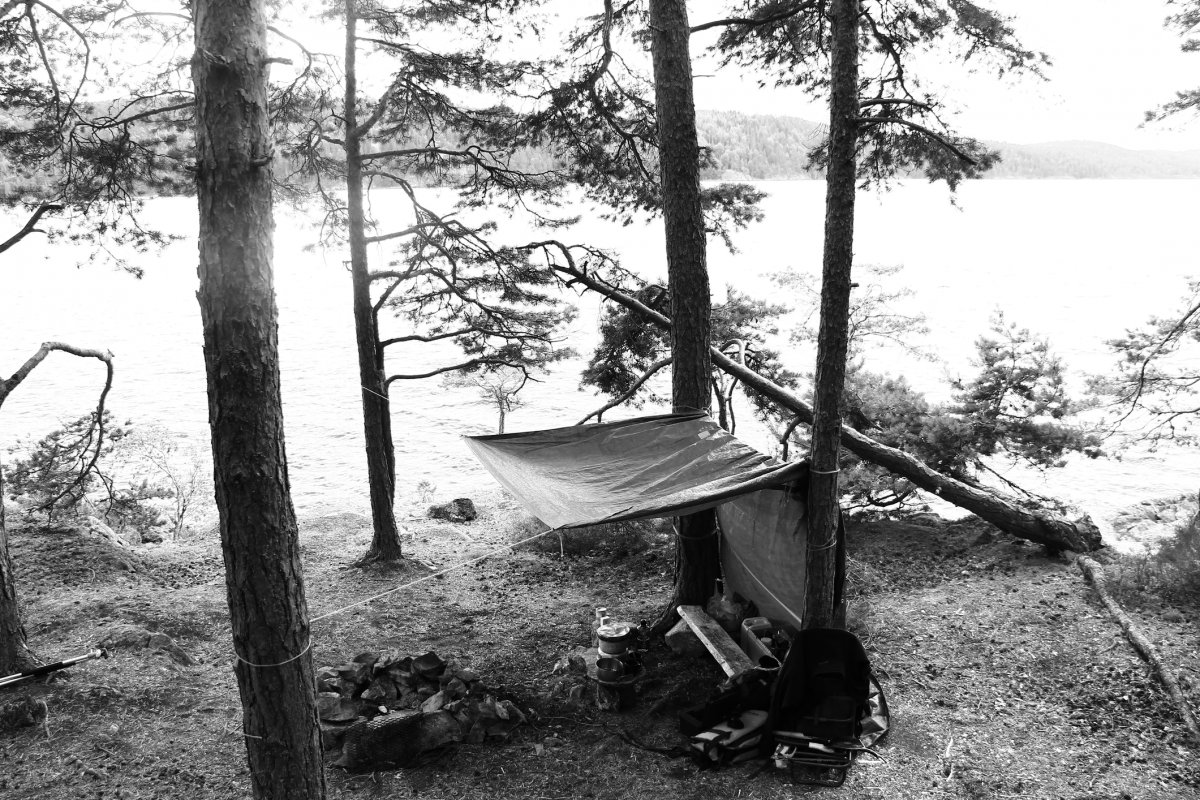 Am späten Nachmittag fing es noch an zu regnen. Zum Glück sind bei der Ausrüstung ein Tarpet und genug Schnur dabei, so konnten wir schnell einen Unterstand bauen und gemütlich heißen Tee trinken.