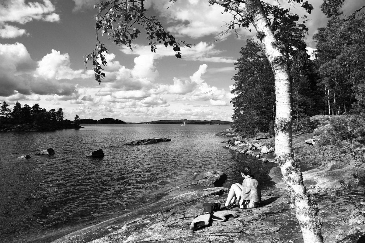 Am Montag wurden wir mit demselben Wind vom Vortag begrüßt. Also beschlossen wir die Tour etwas zu verkürzen. Nach 3 Stunden hatten wir einen Platz gefunden und vergnügten uns den Rest vom Tag mit Sonnenbaden, Schnitzen und Baden. Die Insel hatte in der Mitte einen großen Felsen mit einem super Ausblick. Um die Insel gab es einige Klippen, von denen man super ins Wasser springen konnte. Da wir uns keine Campinginsel ausgesucht hatten, musste man sich mit der „Klo-Frage“ etwas intensiver auseinandersetzen, was so viel heißt wie Platz suchen, Schaufeln und den Rest kann man sich ja vorstellen. Nach Jägerbraten mit Kartoffeln und Bohnen ging es dann ins Bett.