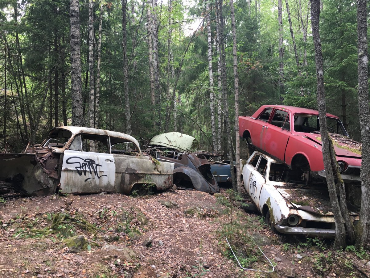 Wir zögerten nicht lange und fuhren los, die ersten paar Schläge waren schwer aber irgendwann hat man den Dreh raus. Am zweiten Tag trafen wir ein Pärchen, mit denen wir die erste Woche verbrachten und auch die Umtragestellen zusammen bewältigten. Das ist ein Geheimtipp, zu viert lassen sich die Wagen besser umspannen, vor allem ohne alles ausräumen zu müssen! Wir fuhren zu Beginn Richtung Norden, dann über den Blomsjön Richtung dem Fluss Lelång, dort trennten wir uns von unseren Freunden, da sie nur eine Woche gebucht haben und wieder Richtung Lennartsfors mussten. Wir entschieden uns für die Weiterfahrt in Richtung Süden nach Gustavsfors, auch sehr zu empfehlen. Dort haben wir nach einer Woche Brot endlich mal wieder etwas warmes Essen können in einem Restaurant. Wir waren nämlich in genau den zwei Wochen des Jahres da, in denen absolutes Feuer- und Kocherverbot ausgerufen wurde, aber damit arrangierten wir uns ganz gut! Von dort aus drehten wir eine Runde über den Västra Silen und trugen ein letztes Mal um wieder auf den Lelång. Wir fuhren zurück Richtung Norden nach Lennartsfors, da wir unbedingt noch den Autofriedhof sehen wollten bei Båstnäs und wir Richtung Norwegen wollten auf die Grenzinsel Trollön. Alles beides sehr zu empfehlen!