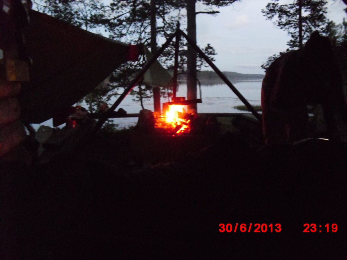 Am Lagerfeuer verbrachten wir eine lustige Zeit mit Karten spielen, Stockbrot backen oder baden, jeder nach Lust und Laune. Gegen halb zwölf abends zogen wir uns in unsere Schlafstätten zurück. Ein letzter Blick auf den in der Dämmerung liegenden See und die Augen fielen zu.