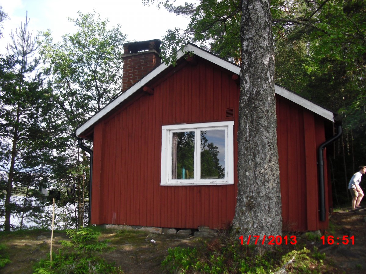 Traumhafter Seeblick auf die im See verteilten Inseln und ein kleines Schwedenhäuschen mit