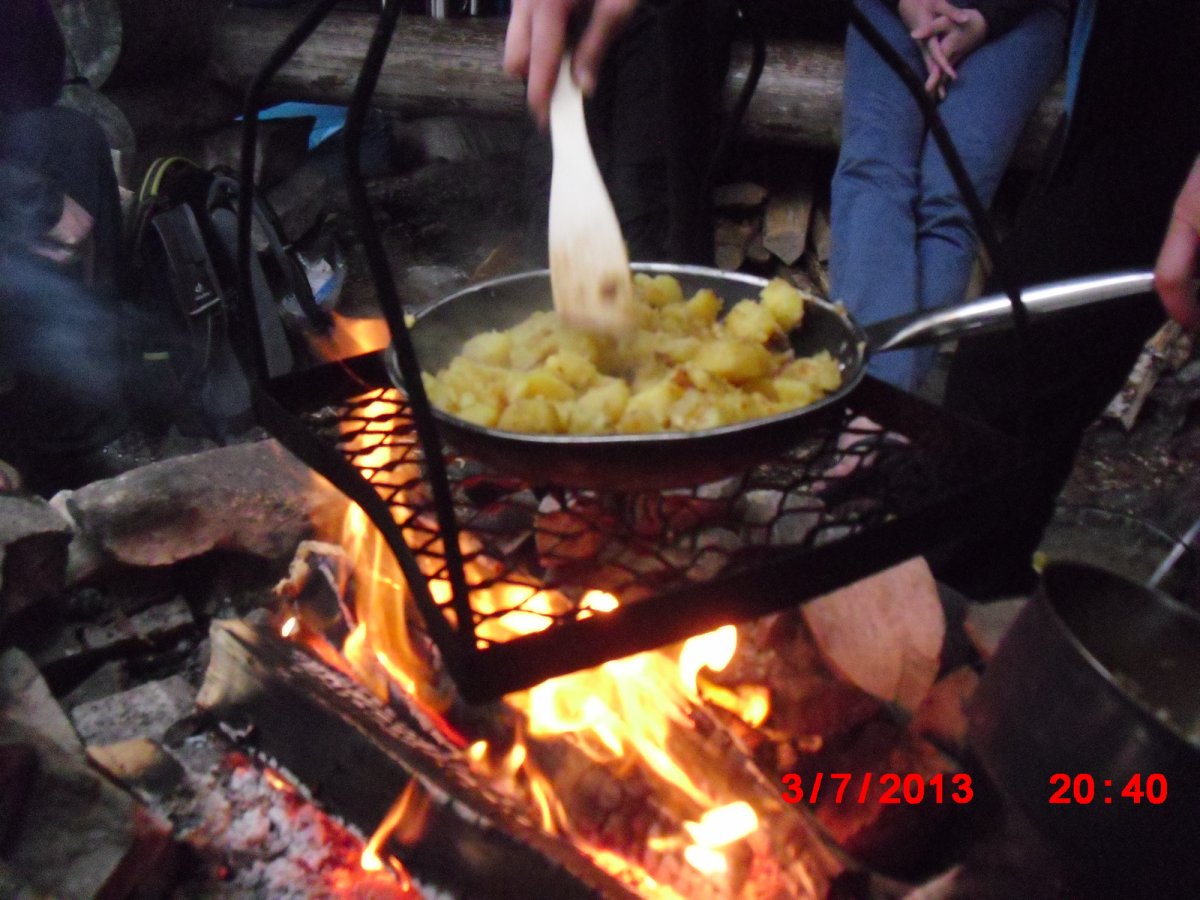 Ein Teil der Gruppe kümmerte sich ums Essen und die anderen nutzten die Regenpause zum Zeltaufbau. Am Lagerfeuer lernten wir uns besser kennen und ließen den Abend gemütlich ausklingen.
