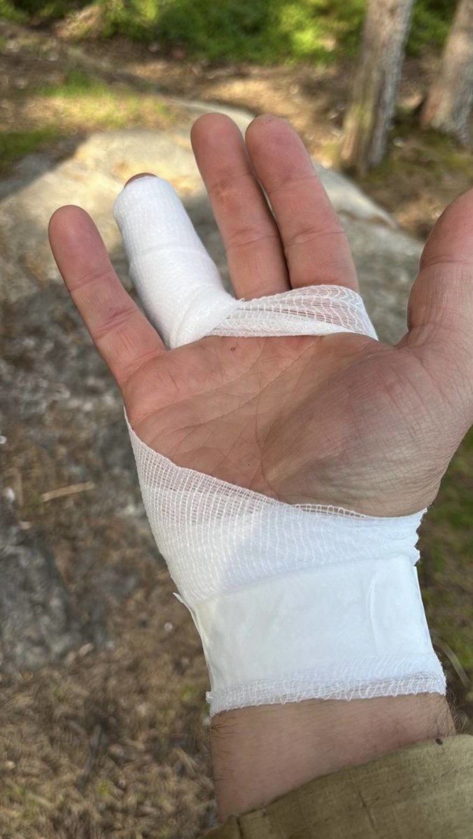 Am nächsten Morgen machten wir uns auf die Suche für den nächsten Lagerplatz, leider verlief diese bei Strahlenden Sonnenschein nicht wie erhofft schnell und problemlos und so Paddelten wir an diesem Tag ca. 30 Km bis wir eine freie Lagerstelle gefunden hatten. Entweder waren diese bereits belegt oder wir konnten diese nicht finden (was aber eher an unserer Kunst zu Navigieren als an den DANOS lag). So hatten wir also unsern Lagerplatz für diese Nacht gefunden, wenn auch spät. Also wieder Angeln raus und ab ans Wasser. Auch an diesem Abend hatten wir unser Anglerglück dabei denn es dauerte nicht lange bis wir einen ca. 65 cm Hecht an der Angel hatten. Dass dieser Fang uns noch die Nacht versauen sollte, wusste zu diesem Zeitpunkt noch niemand von uns. Beim rausholen des Hechts, zeigte dieser warum er ein Jäger ist. Er war leider schneller als ich und erwischte meinen Ringfinger mit seinen Zähnen. Da diese beim Hecht Rasiermesser scharf sind, war dies natürlich nicht sehr angenehm. Nun war mein Finger durch 5 Schnitte gezeichnet und so lief ich leider den Rest unseres Abenteuers mit einem Verband um den Finger rum.