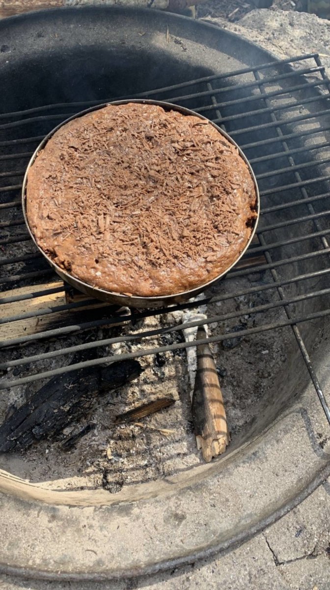 Selbst Backen auf offenen Feuer geht ganz gut. Denn wir mussten ja mindestens einen Kuchen in Schweden Backen, wenn unser „Kaleu“ auf Tour Geburtstag hat.