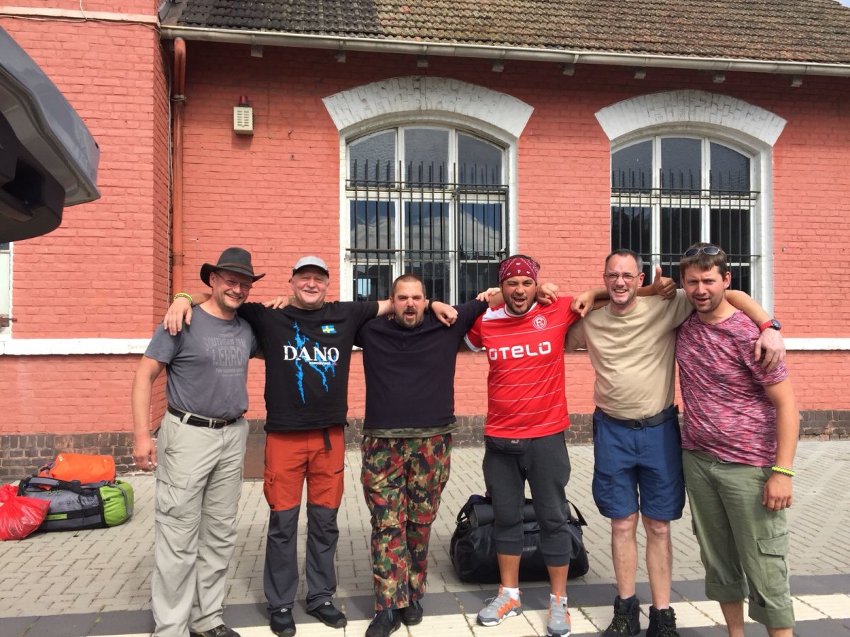 Am Freitag den 31.08.2018 ging es dann endlich los. Unsere Frauen brachten uns zum Bahnhof Rommerskirchen von wo aus wir zum Hbf. Köln fuhren. Von dort aus gingen wir dann zur angegebenen Bushaltestelle wo wir sofort die ersten Mitreisenden kennen lernten. Der Warteplatz füllte sich schnell mit neuen Leuten. Als der Bus dann mit ca. einer halben Stunde Verspätung an kam waren wir alle froh dass es endlich losging. Unglücklicherweise hatten wir auf diversen Autobahnen Staus. So mussten zum Beispiel auf einer drei spurigen Autobahn 2 Fahrstreifen wegen einer LKW Bergung gesperrt werden. Die erste Fähre erreichten wir dann leider 5 Minuten zu spät wodurch eine längere Pause entstand. An der zweiten Fähre hatten wir das gleiche Pech. Somit kamen wir erst um 13 Uhr statt um 10 Uhr im Basislager an.