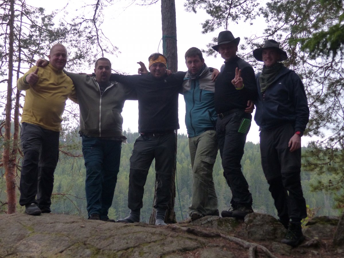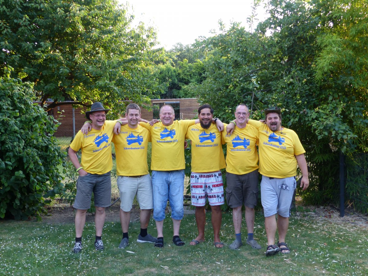 Alles begann im August 2016 mit einem YouTube Video von Gerd Kassel in dem er das Unternehmen Scandtrack erwähnte. Nachdem ich die Seite von Scandtrack besucht hatte war die Idee geboren eine 7 tägige Kanutour auf eigene Faust zu unternehmen. Jetzt stellte sich die Frage mit wem? Also erzählte ich in meinem Freundes- und Bekanntenkreis was ich vor hatte und fragte wer Interesse habe mit mir die Reise zu unternehmen. Es fanden sich schließlich 6 Leute die mitfahren wollten. Beim ersten Treffen um einen Termin zu suchen stellte sich raus das einige erst 2018 konnten. Bei der Terminsuche für 2018 konnte dann einer leider bei dem angestrebten Termin nicht. Also hatten wir eine Gruppe von 6 Mann zusammen. Als dann die Buchungsfreigabe im Sommer 2017 für 2018 da war habe ich die Reise für uns alle gebucht. Ich hatte gerade den Rechner runter gefahren als ich einen freundlichen Anruf von einem Scandtrack Mitarbeiter bekam der nachgefragte ob ich wirklich 2018 und nicht 2017 buchen wollte da es wohl bei anderen Buchungen zu Fehlern gekommen war. Fortan wurde sich über Equipment und sinnige Dinge zum mitnehmen ausgetauscht und besorgt. Bei der Urlaubsplanung bekam leider einer der angemeldeten keinen Urlaub. Somit musste eine Ersatzperson gesucht werden. Diese war dann aber glücklicherweise schnell gefunden und der Name wurde umgebucht. Nach Erhalt der gesamten Reiseunterlagen fanden wir uns alle wieder zusammen um alles nochmals im Detail zu besprechen und die Ausweisnummern zu übermitteln. Inzwischen hatten wir auch alle einheitliche T-Shirts und das erste Gruppenfoto entstand.