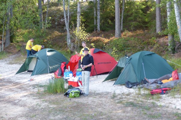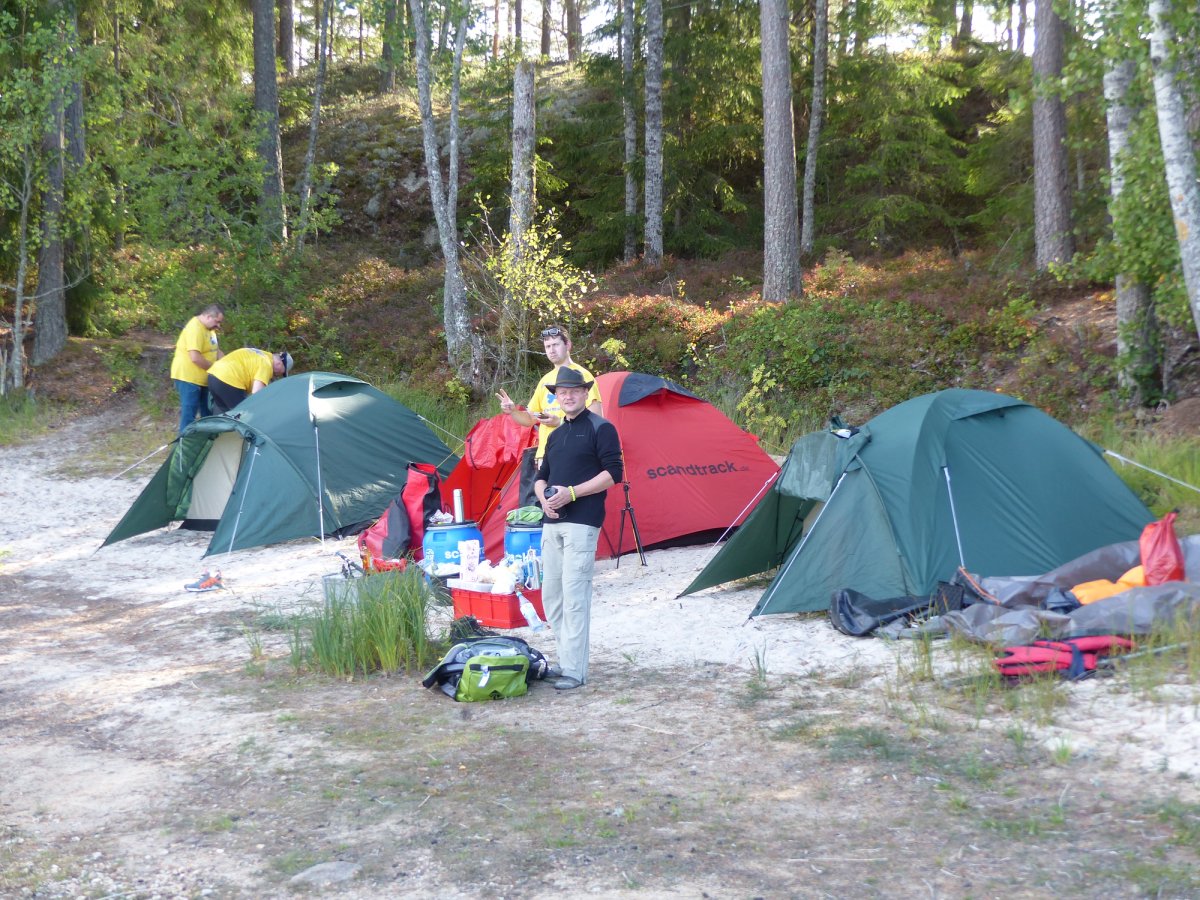 Wir machten uns mit der Ausrüstung vertraut und kochten unser erstes Abendessen. Am nächsten Tag ging es dann bei einem nicht zu unterschätzenden Wellengang weiter zum DANO 17. Vorher legten wir noch kurz an einer kleineren Insel an auf der zwei Mitreisende aus unserem Bus übernachtet hatten da wir leicht die Orientierung verloren hatten. Auch am DANO 17 konnten wir wieder ein gutes Lager aufschlagen. Zwei von uns endschieden sich in dieser Nacht im DANO und nicht im Zelt zu schlafen. Als ich dort mit einem Metalleimer der vor Ort stand Löschwasser holen wollte mußte ich leider feststellen das dieser nicht nur an der Öffnung ein Loch hatte.