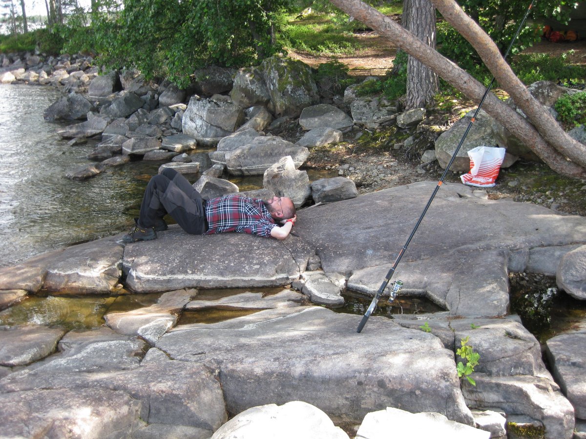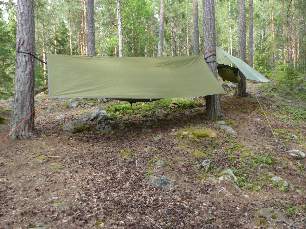 So hing mein Hängematten Setup leider nicht richtig und mein kurzes Tarp über meiner Hängematte hielt den Regen nicht richtig ab wodurch ich mitten in der Nacht durch den Regen in meinem Gesicht geweckt wurde. Um weiter Schlafen zu können und nicht alles nass werden zu lassen improvisierte ich kurzerhand und spannte mein Regenponcho um meine Hängematte der den Rest der Nacht weiteren Regen abhielt. Am kommenden Morgen war alles schnell getrocknet und es ging weiter Richtung Platz 7. Leider wieder mit Gegenwind da dieser in der Nacht gedreht hatte. Am Rastplatz 7 stand leider kein Unterstand mehr da dieser abgebrannt war. Ein Hinweisschild wies darauf hin das ein neuer Unterstand in Arbeit sei. Am darauf folgenden Tag ging es dann wider mit einer Umtragung zurück auf den Övre Gla und zum Platz 53 den wir in dieser Nacht mit einer Dänischen Familie teilten. Den letzten Tag verbrachten wir dort und fuhren nach dem reinigen unseres Equipments gegen späten Nachmittag zum ersten Mal ohne Wind und Wellen zurück zum Basislager um dort die letzte Nacht zu verbringen. In dieser Nacht fing es dann an zu regnen und dieser Regen begleitete uns dann den ganzen Tag über bis zu unserer Rückreise mit dem Bus. Im großen und ganzen hatten wir echt Glück mit dem Wetter da von Dienstag an eigentlich Regen gemeldet war der aber Tagsüber ausgeblieben war wodurch wir vom Wind abgesehen eine sehr schöne Tour gefahren sind.