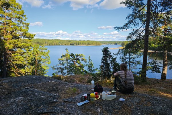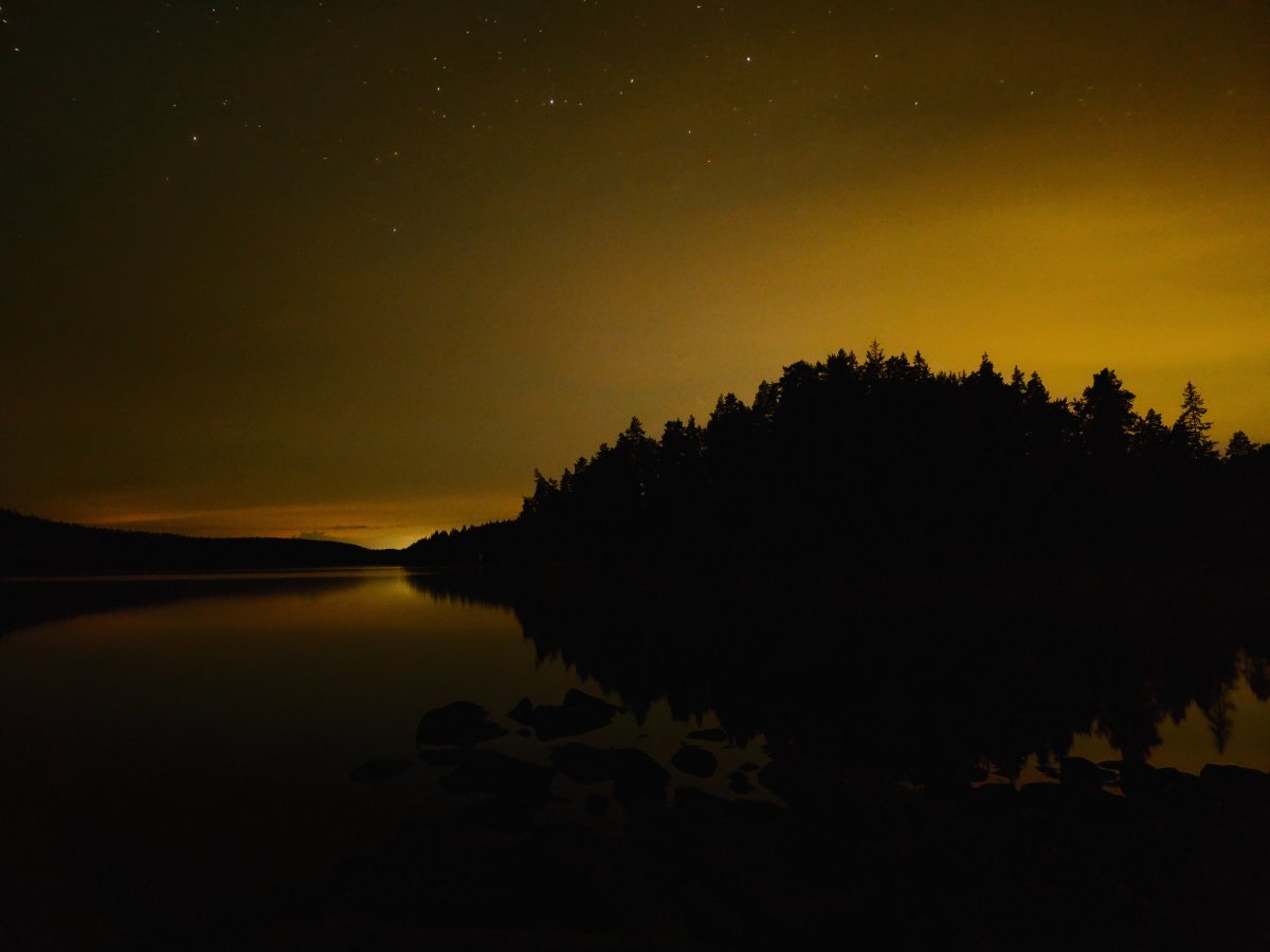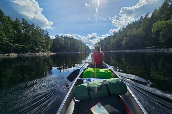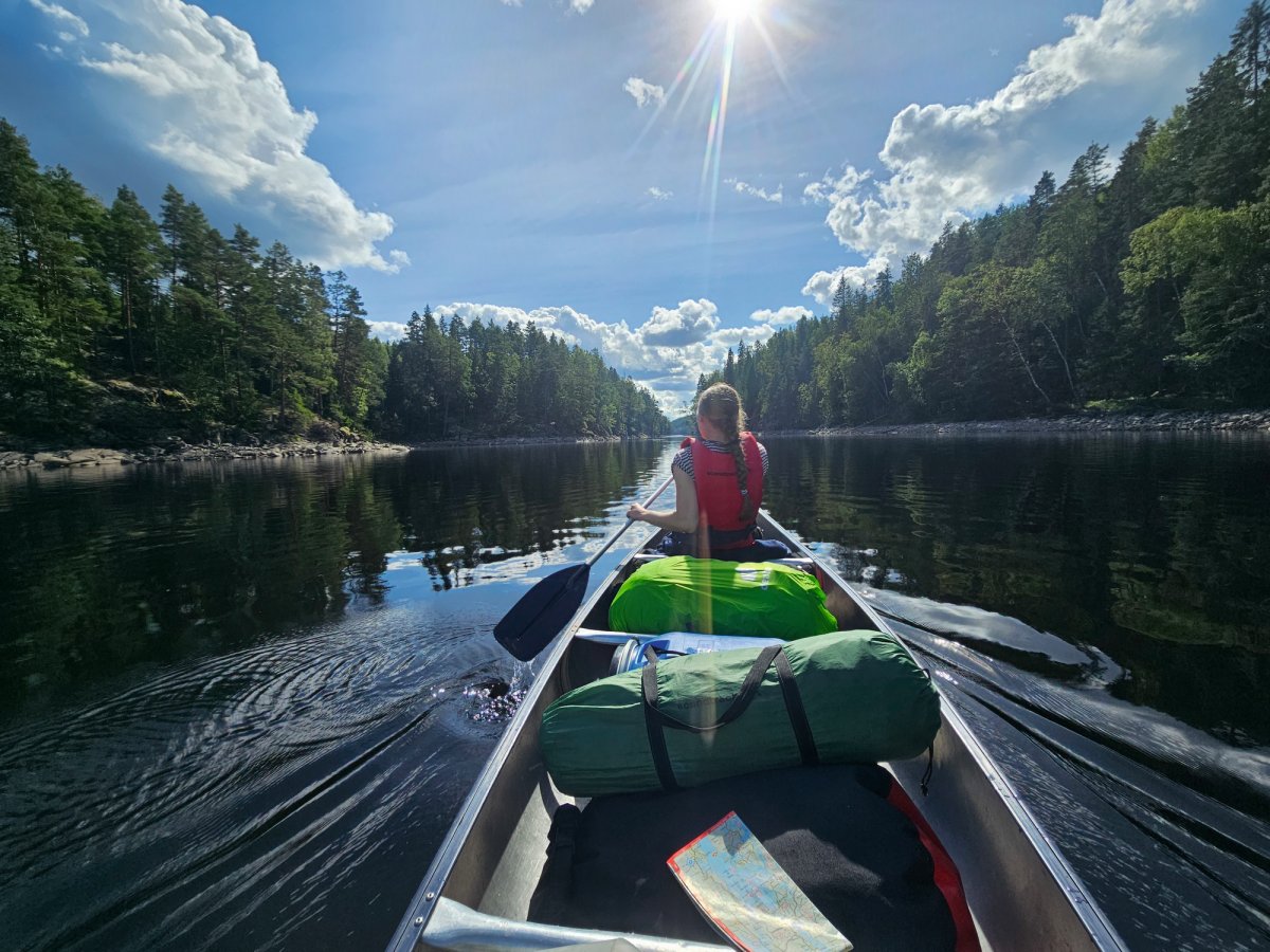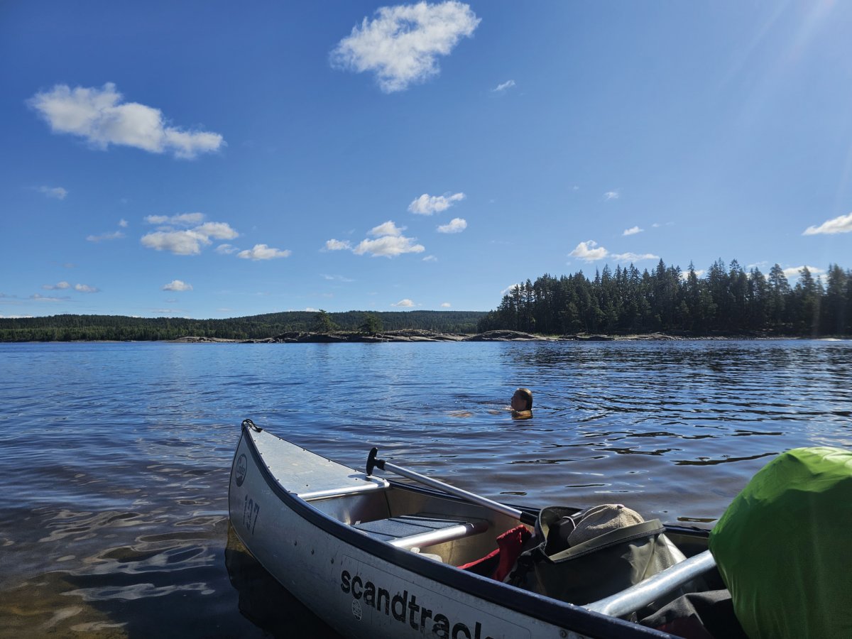 Das Wetter heute war wieder etwas besser und wir konnten uns beim Paddeln wieder etwas Zeit lassen. Angekommen bei DANO-Platz 11 haben wir wie jeden Tag unser Zelt aufgebaut und uns einen gemütlichen geraden Platz am Ufer gesucht. Dort habe ich Gemüsereis und gefüllte Paprikaschoten vorbereitet, während Lina die wenigen Sonnenstrahlen für ein kurzes Bad genutzt hat. Nach dem Essen und Abwaschen, schnappten wir uns das Rätselheft und genossen die Zeit zu zweit in dieser absoluten Traumlandschaft. Nachts konnten wir wieder die Sterne sehen und so saßen wir stundenlang am Ufer. Auf einer gegenüberliegenden Insel hörte eine Gruppe Musik, während sie am Lagerfeuer saßen. Anfangs störte es ein wenig, doch spielten sie nach gewisser Zeit Lieder von einer Band, die wir beide sehr mögen. Während unserer Sternbeobachtung entdeckten wir einige Flusskrebse im Wasser, die schnell flüchteten, wenn der Strahl unserer Stirnlampen sie traf.