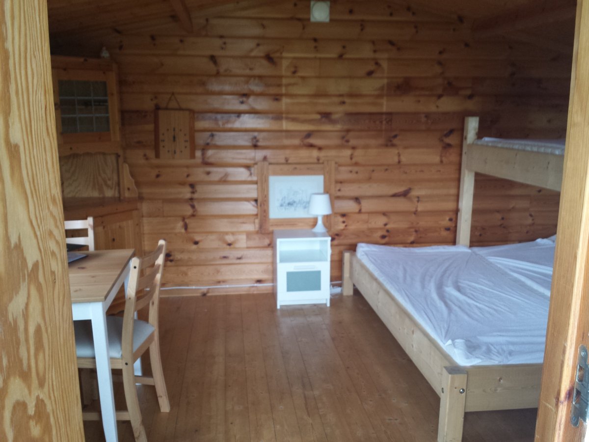 Die Busfahrt dauerte etwa 12 Stunden und beinhaltete zwei Fährüberfahrten, bei denen der Bus verlassen werden musste. Am Samstagmorgen kamen wir müde, aber bei wunderbarem Sonnenschein, an dem Basiscamp an. Dort bekamen wir einen kleinen Snack und warteten darauf, dass unsere Hütte bezugsfertig wurde. Die Hütte hatte eine schöne Terrasse und lieferte einen tollen Blick auf den ca. 20 m entfernt liegenden See. Wir hatten es uns ursprünglich etwas einsamer und nicht mitten auf dem Campingplatz vorgestellt – wohlgefühlt haben wir uns trotzdem!