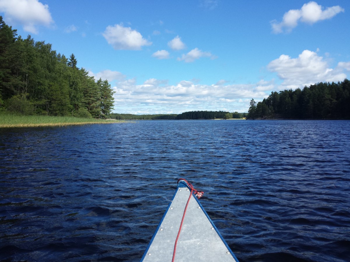 Am nächsten Tag hatten wir uns bereits eine größere Tour vorgenommen: Die Umrundung des Sees Foxen. Am Anfang noch sehr gemütlich, wurde die Tour durch starken Wind und relativ hohe Wellen auf der Ostseite des Sees zu einem richtigen kleinen Abenteuer. Nach vielen Stunden und den ersten Blasen an den Händen kamen wir gegen späten Nachmittag wieder am Campingplatz an. Dort waren wir unglaublich glücklich über die warmen Duschen (5 SEK für ca. 2 Minuten) und verbrachten anschließend einen entspannten Abend auf unserer kleinen Terrasse. Den darauffolgenden Tag, immer noch mit herrlichem Sonnenschein, verbrachten wir auf einer kleinen Insel auf dem See. Wir hatten uns morgens ein Lunchpaket gerichtet und verbrachten den Tag mit in-der-Sonne-faulenzen, Baden und dem Erkunden der kleinen, aber wunderschönen Insel.