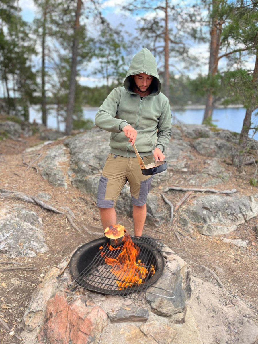 Geschlafen haben wir in Hängematten, die wir unter einem einfachen Tarp aufgehängt hatten – ein minimalistisches Dach, das uns vor Regen und Wind schützte. Tagsüber genossen wir die Ruhe, kochten gemeinsam schmackhafte Mahlzeiten und holten unser Trinkwasser direkt aus dem See. Gewaschen wurde sich ebenfalls darin – eiskalt, aber erfrischend. Besonders unvergesslich waren die klaren Nächte, in denen wir mit der Kamera sogar die Milchstraße einfangen konnten.