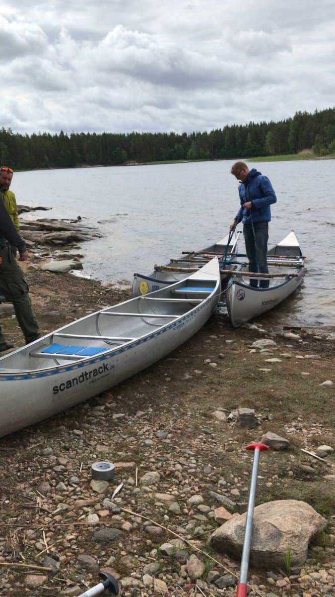 Das Wetter wurde leider nur bedingt besser, allerdings legte sich der Wind. In einer Regenpause beschlossen wir 2 Kanus miteinander zu verbinden und einen Katamaran zu bauen, um dem Foxen entgegen zu treten. Unser Ziel: Tabak und Bierreserven auffüllen am 20km entfernten Supermarkt in Töcksfors. Eine gewaltige Strecke bei Wind, aber der Wind stand passend im Rücken.