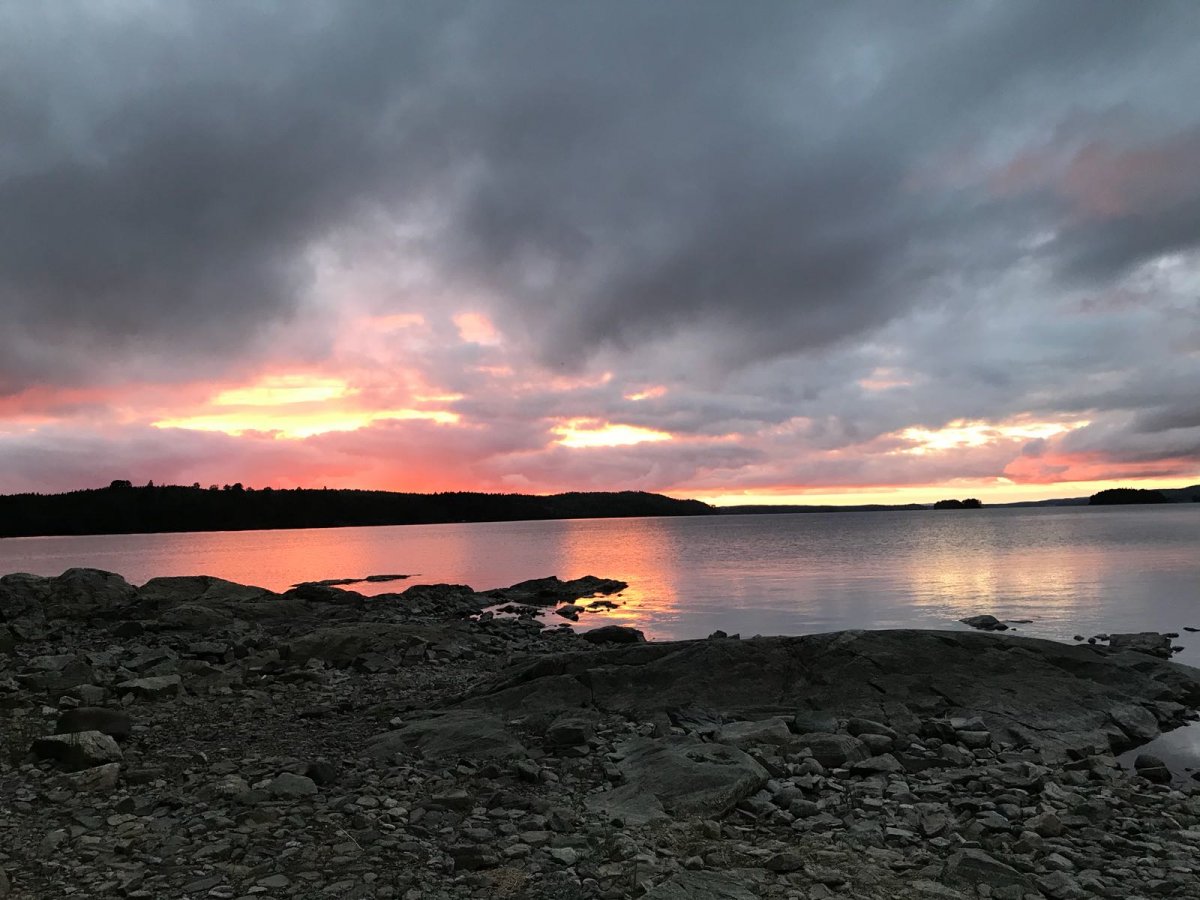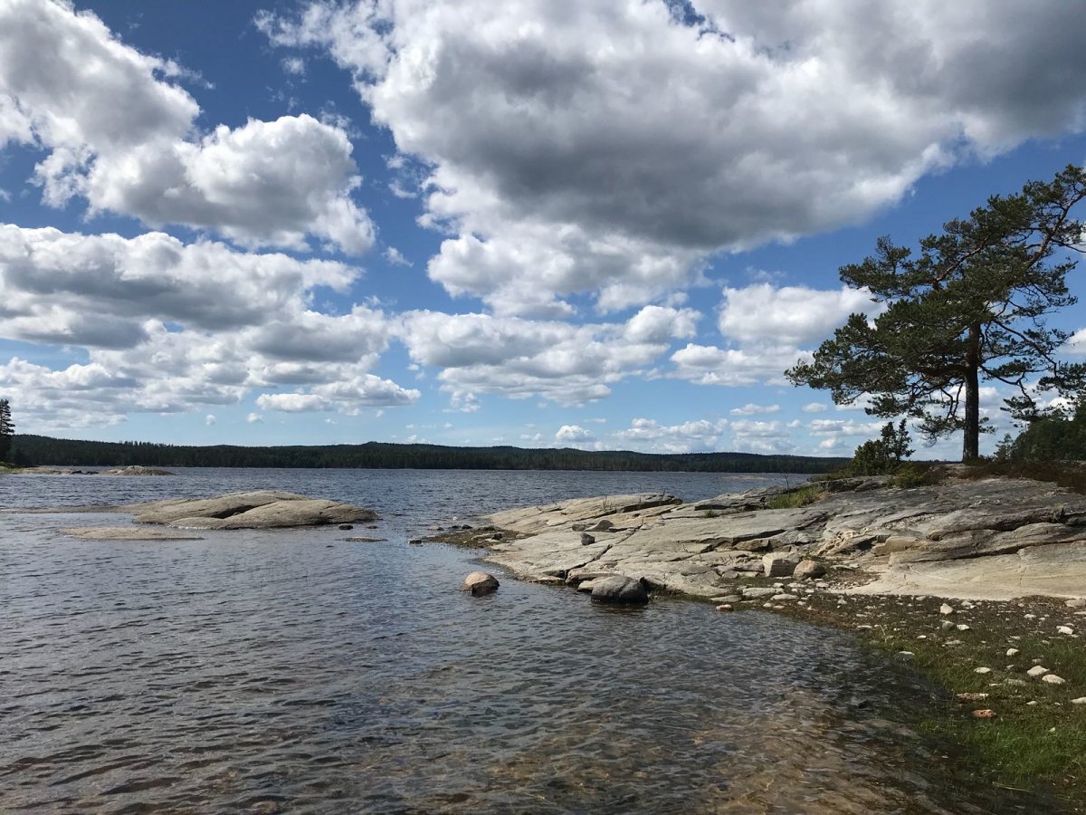 Mittlerweile ist aus der dänischen Autobahn eine schwedische geworden. Die Landschaft wird rauer, bewaldeter, steiniger. Je weiter wir gen Norden fahren desto schöner wird es. Irgendwann kurz nach einem letzten längeren Stop an einem See an der Autobahn geht es auf die Landstraße. „Super, gleich sind wir da….“ Der Busfahrer scherzte irgendwann: „Schaut nochmal raus, dass hier ist das letzte bisschen Zivilisation, ab jetzt wird’s immer weniger, bis wir irgendwann komplett in der Wildnis sind“…… jaja, als ob, so schlimm wird’s wohl nicht werden, dachte ich zu diesem Zeitpunkt noch.