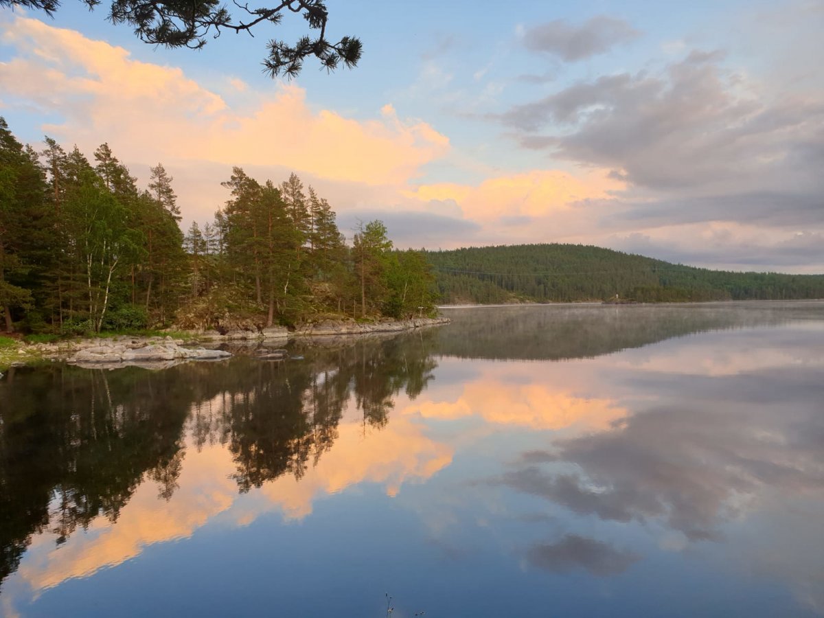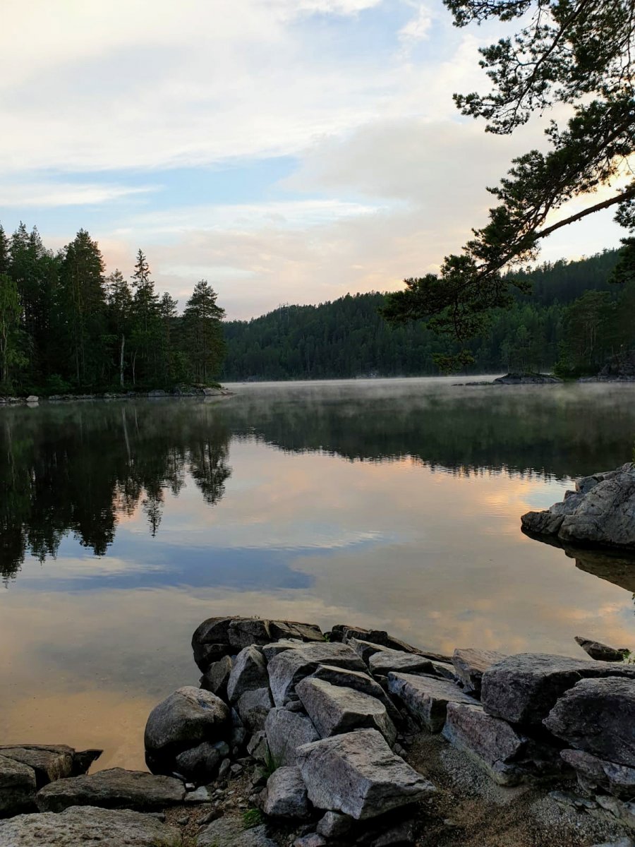 Im Stora Le spiegelten sich die Wolken und langsam stieg Nebel auf. Wir waren immer noch überrascht. Ist die Natur zur Ruhe gekommen und schläft?