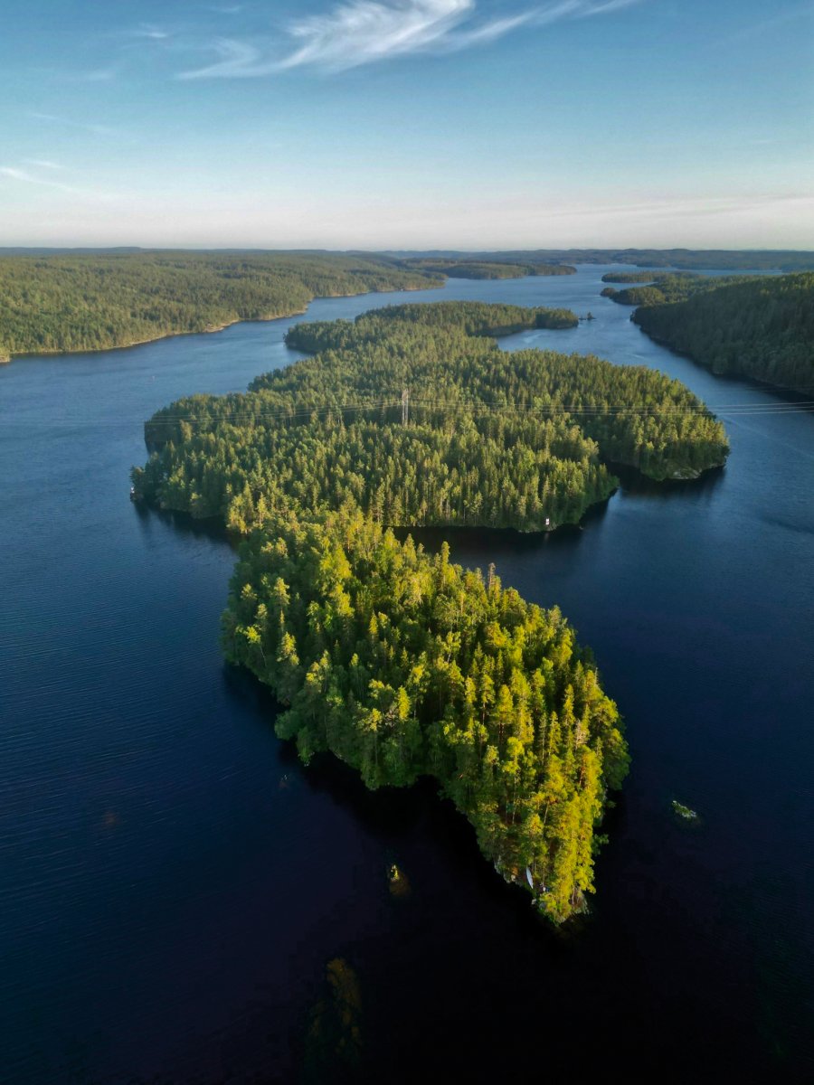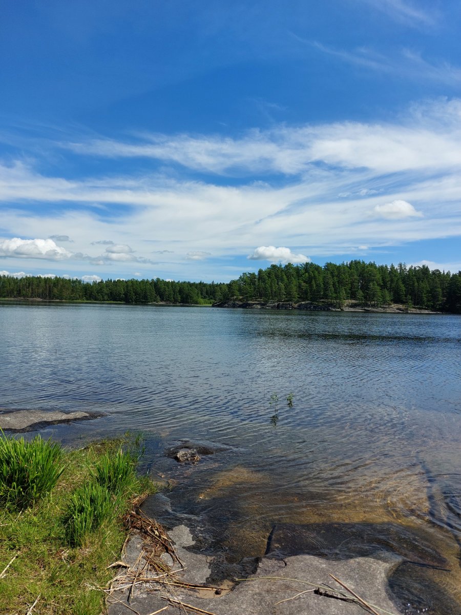 Nachdem sich der Regen noch bis in die Nacht hineinzog, erwartete uns am Morgen ein Mix aus Sonne und Wolken. Der Regentag war nun endlich vorbei und wir genossen die Sonnenstrahlen und nutzten den Morgen, um erneut zu duschen. Ohne Ziel ging es heute mit dem Kanu auf’s Wasser, um einen neuen Spot zu finden. Dies erwies sich wieder mal aussichtslos, da uns entweder der Platz nicht gefiel, oder unsere Top-2-Kriterien nicht erfüllt wurden: Abendsonne und keine Menschen. Also steuerten wir diverse Inseln an, welche sich dann als Vogelschutz-Insel entpuppten. Auf einer kleinen von ihnen sahen wir schon von weitem ein großes Vogelnest. Mit dem Fernglas identifizierten wir den dazugehörigen Vogel als Fischadler und freuten uns sehr über unsere Beobachtung. Schnell holte uns allerdings die Frustration ein und wir fuhren Richtung Norwegen, in der Hoffnung, dort einen guten Spot zu finden - mittlerweile war uns alles recht, aber auch so fanden wir keinen Platz. Am Ende sind wir wieder mal weiter gepaddelt als wir es eigentlich wollten und fanden uns auf der Landzunge einer kleinen Insel ein. Da wir dieses Jahr Probleme mit dem Kocher hatten, woran wir uns aus letztem Jahr nicht erinnern konnten, setzten wir direkt nach dem Anlegen und noch vor dem Zeltaufbau die Kartoffeln auf. Doch wie wir später feststellen mussten, reichten auch zwei Stunden nicht aus, um klein gewürfelte Kartoffeln durch zu kochen. Da wir noch viel Zeit bis zur Nacht hatten, stiegen wir noch einmal ins Kanu und machten einen kleinen Sonnenuntergangs-Ausflug über den See. Und auch hier entdeckten wir wieder einen Fischadler, welcher jedoch direkt das Weite suchte als wir uns ihm näherten. Auf dem Weg durch eine recht enge Schneise des Sees entdeckten wir 2 kleine Wasserfälle, die sich perfekt in die Natur eingliederten. Auf dem Rückweg des abendlichen Ausflugs fiel uns noch ein komischer Gegenstand im Wasser auf, den wir uns genauer ansehen wollten. Es wirkte wie ein Teil eines Seilzuges oder etwas in der Art. Bei näherer Betrachtung kam unter Wasser ein riesiges Anhängsel aus Metall zum Vorschein. Wir mutmaßten, dass vielleicht mal ein Kran in den See gestürzt sein könnte. Danach traten wir den Heimweg zum Lagerplatz an. So endete für uns der erste Sonnentag nach dem langen Regen und wir fielen erschöpft, aber glücklich in den Schlafsack.