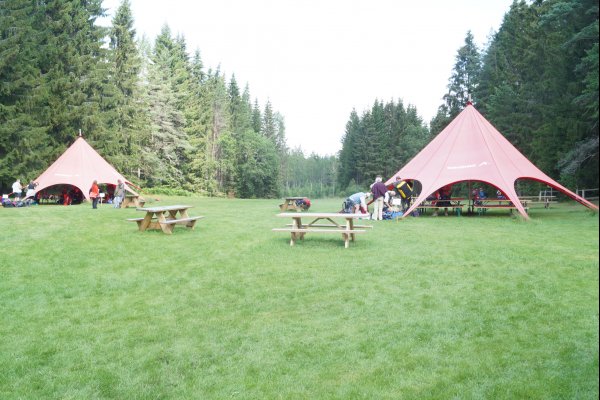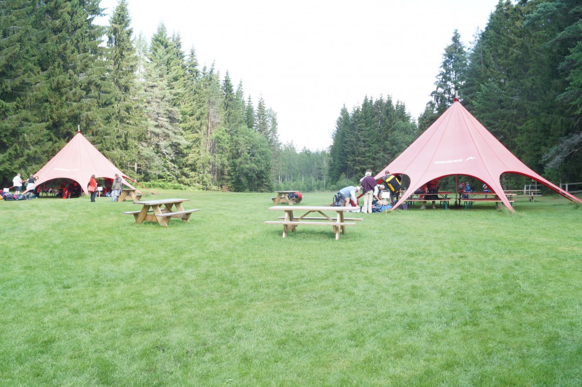 Nach über 20 Stunden Busfahrt erreichten wir nun endlich das Scandtrack Basiscamp, dort stärkten wir uns erstmal mit ein paar Würstchen bevor es dann direkt weiterging in den das Glaskogen Naturreservat. Dort erhielten wir zunächst das wahnsinnig vielseitige und übermäßig ausreichende Verpflegungspaket mit allem was das Herz begehrt.