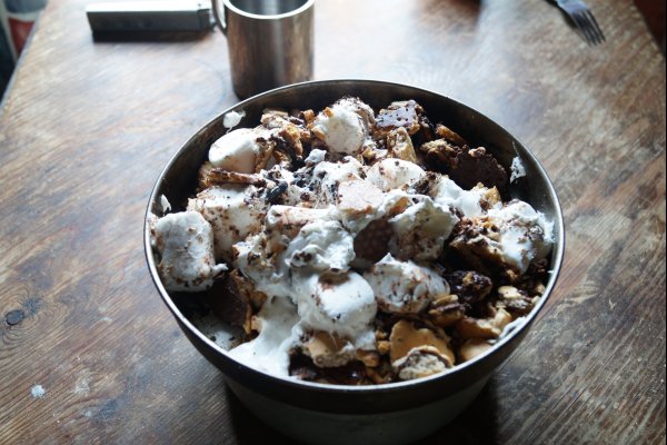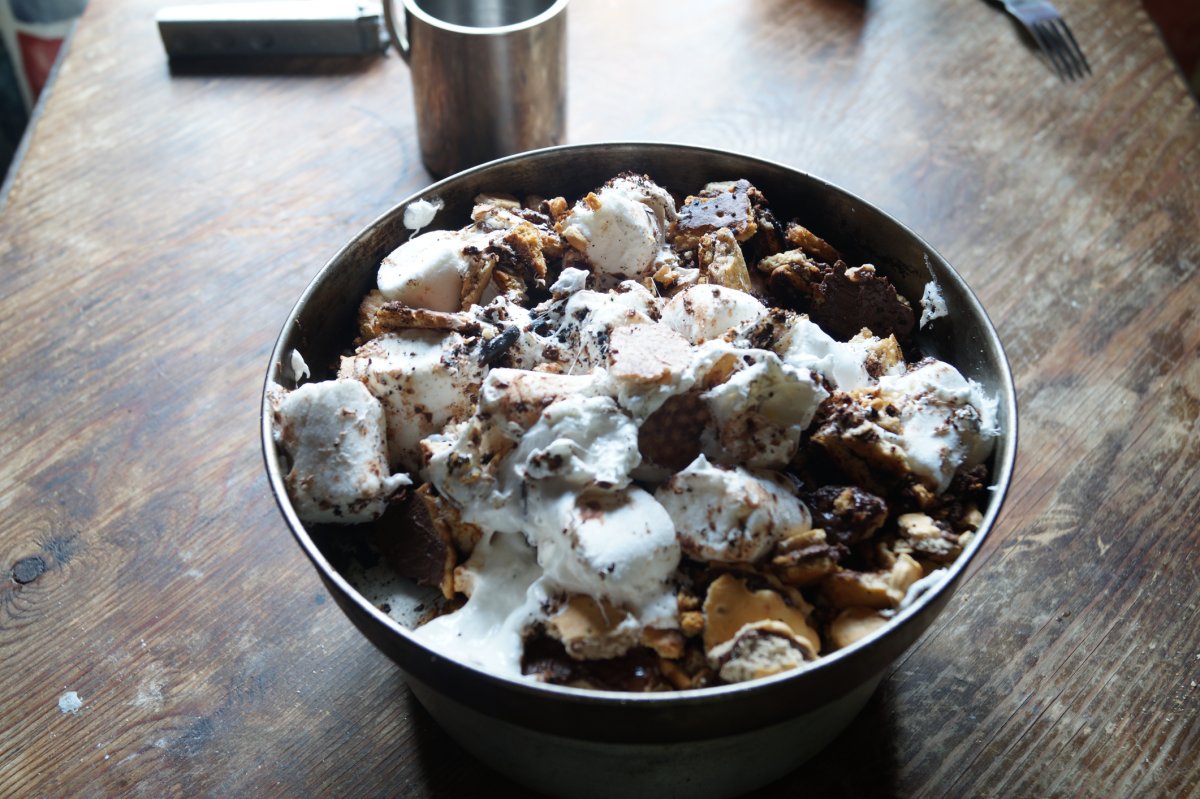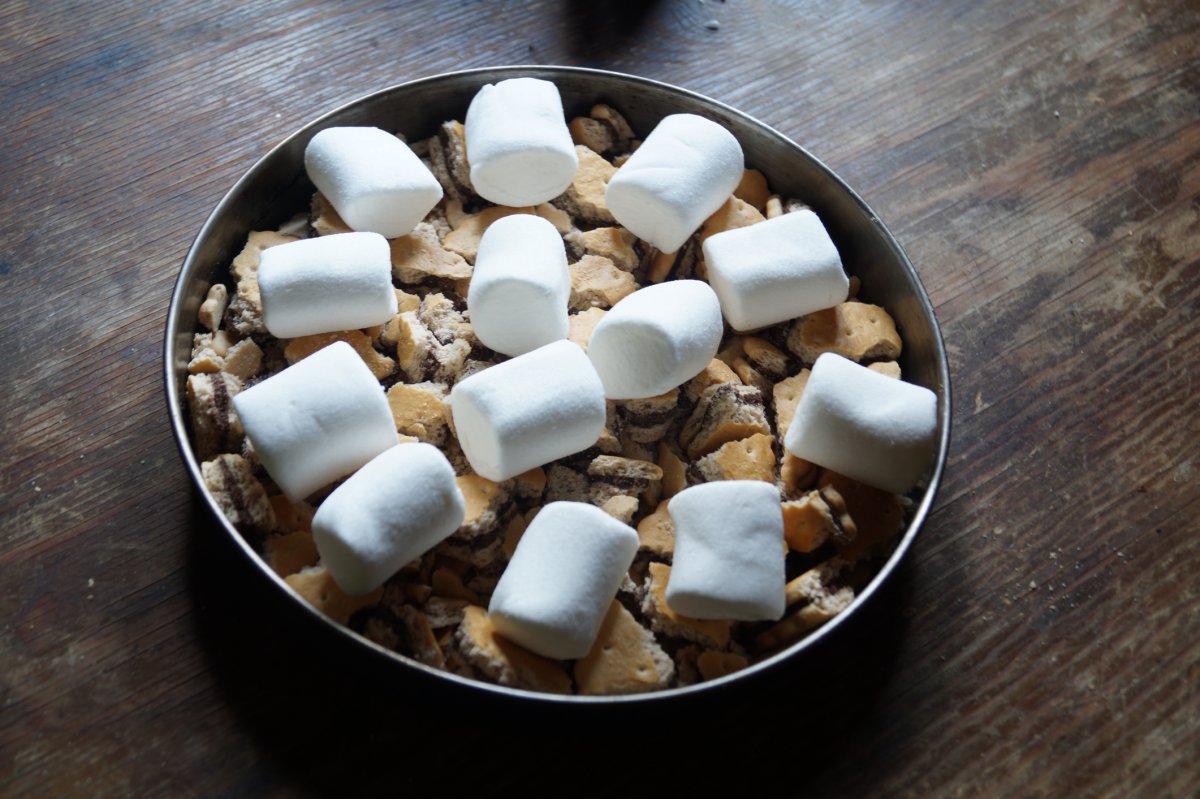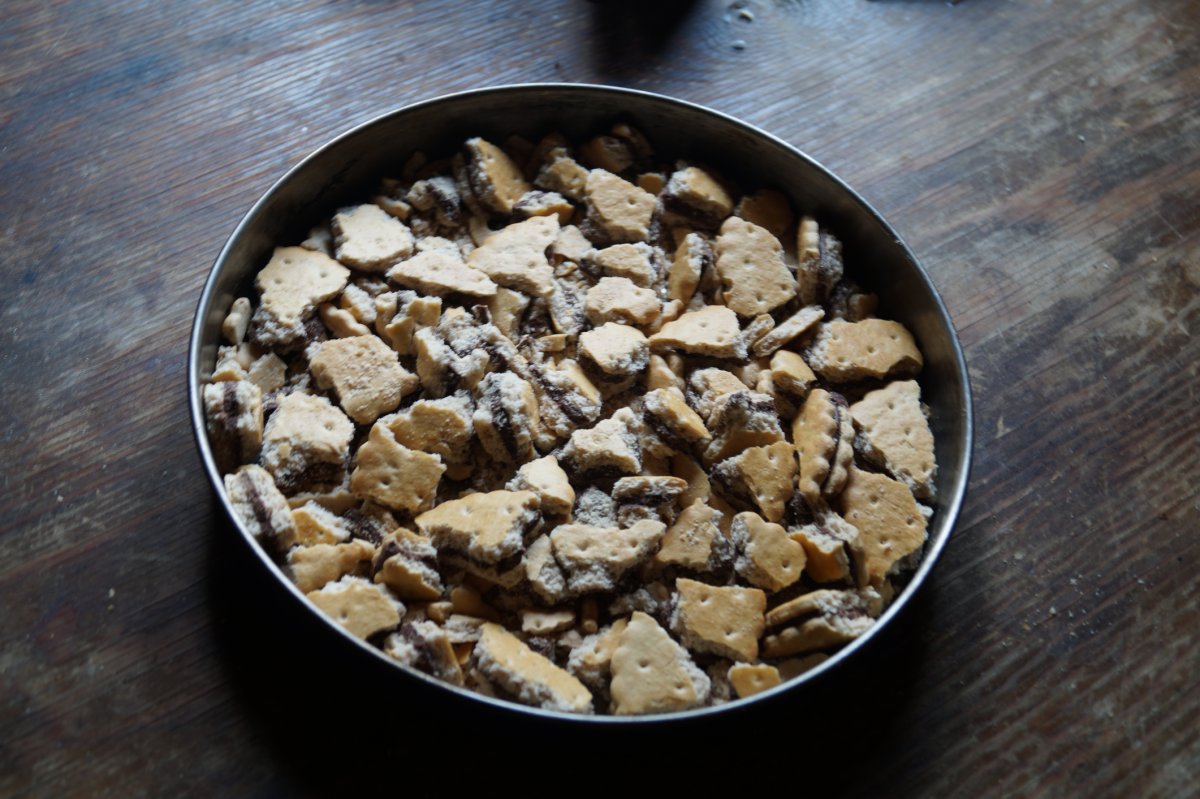 Zum Nachtisch kreierten wir noch einen leckeren Marshmallow-Doppelkeks-Kuchen... anschließend fielen wir todmüde ins Bett.