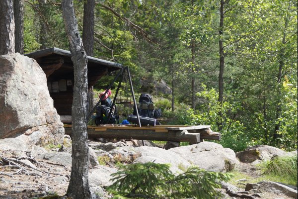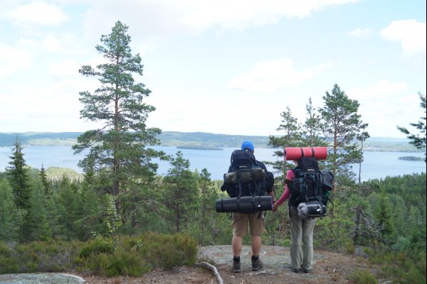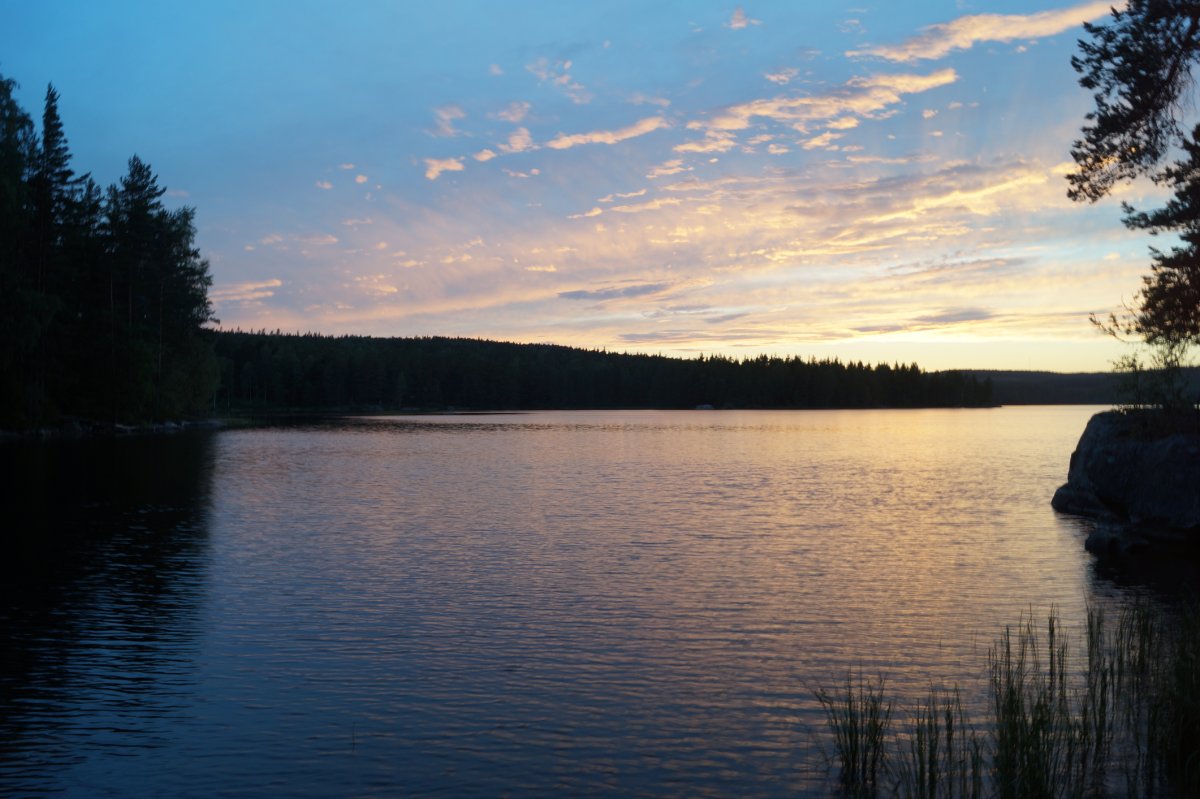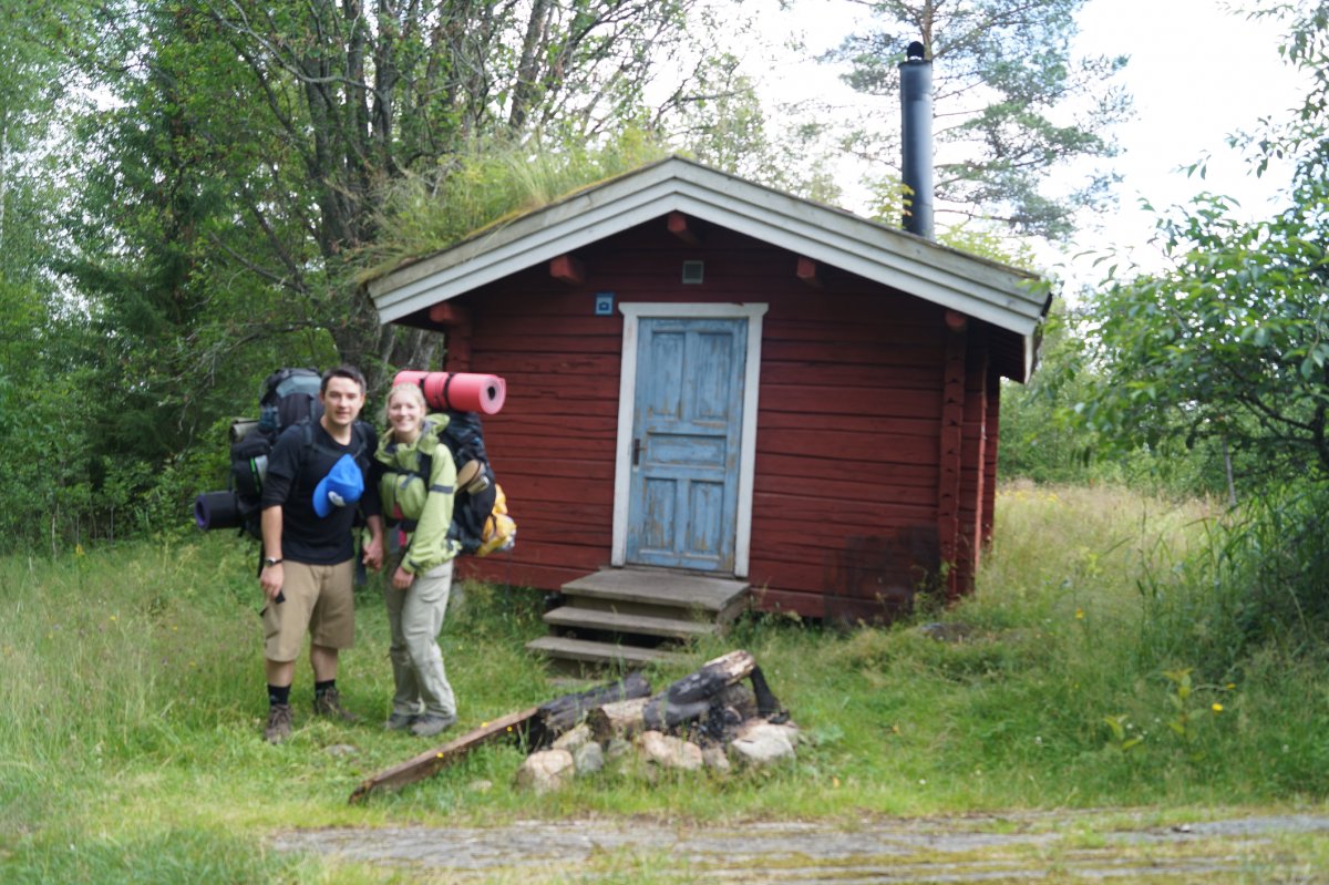 Es ging los – das Wetter sonnig, warm und angenehm, nur leicht bewölkt aber trocken. So wie wir uns das Sommerwetter in Schweden vorgestellt hatten. Der Rucksack erwies sich als deutlich schwerer als wir erwarteten und wir kamen auch nur sehr viel langsamer voran als wir dachten. Über Stock und Stein, quer durch den Wald, entlang der Seen führte uns die Route. Die Stille des Waldes, die wunderschönen klaren Seen, die Waldbeeren überall und dann diese versteckten Schwedenhütten ... wir waren von Anfang an beeindruckt und begeistert! Endlich angekommen in der Ruhe, genau so wie wir es wollten. Doch der Weg zum Ziel am ersten Tag zog sich, wir waren hungrig, der Rucksack war schwer und wir waren müde und der Weg zur Hütte war noch so weit.