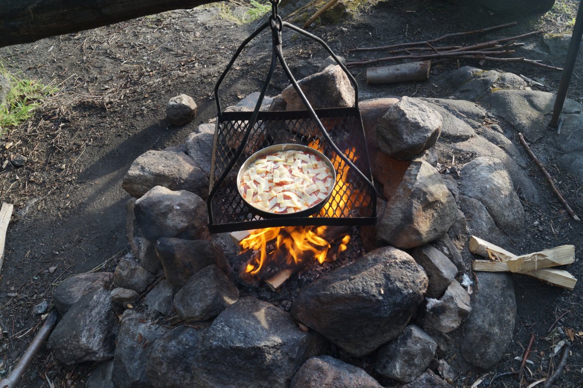 Heute sollte es Outdoor-Pizza geben. Wir machten Teig aus Mehl und Wasser und belegten die den Boden üppig mit Salami, Zwiebeln und Käse. Das Ganze kam dann für weniger als 5 Minuten aufs Lagerfeuer und schmeckte wahnsinnig lecker! Wirklich fantastisch. Kulinarisch wurde die Pizza zu unserem absoluten Highlight (obwohl und bis dahin auch immer alles sehr gut geschmeckt hat). Am Abend grillten wir uns mal wieder ein paar Marshmallows, bis wir schließlich ins Bett gingen.