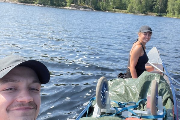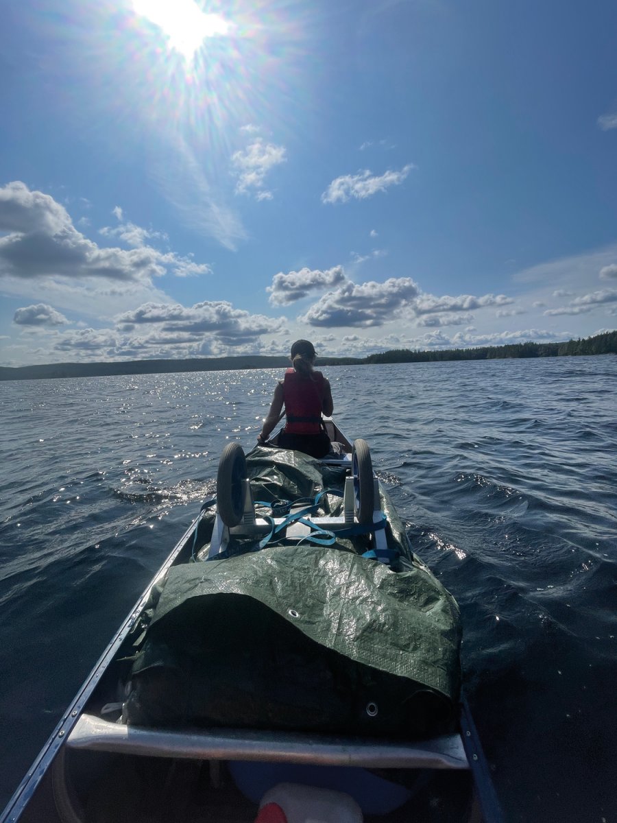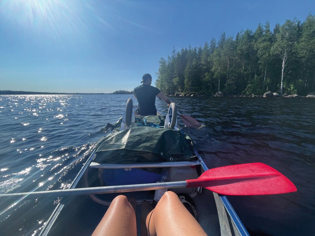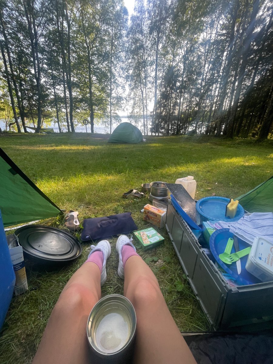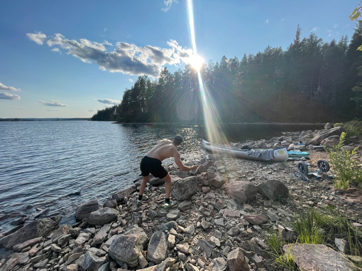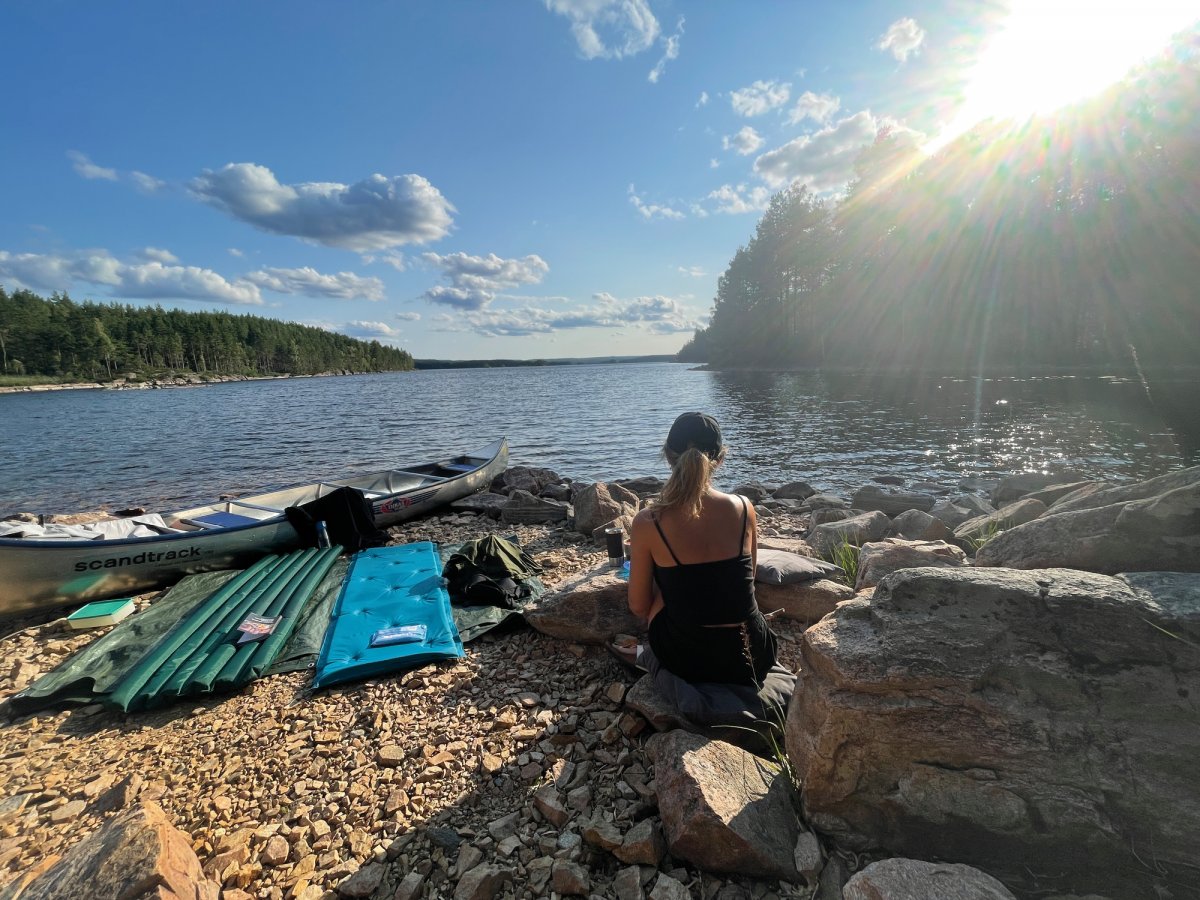Nach dem ersten, noch etwas hektischen Tag, hatten wir am zweiten Tag das Gefühl in unserem Urlaub angekommen zu sein. Morgens wurden wir im Zelt von den ersten Sonnenstrahlen geweckt und starteten mit einem ausgiebigen Frühstück in den Tag. Gemeinsam planten wir unsere Tagesroute und machten uns auf den Weg. Wir paddelten entlang der Westküste des Övre Gla bis zum ersten Kanuumsetzpunkt in Lennungshammar. Wie auf jeder Reise wurde natürlich ein wichtiges Reiseaccesoires vergessen – Wir erstanden am Campingkiosk noch schnell eine Sonnencreme.