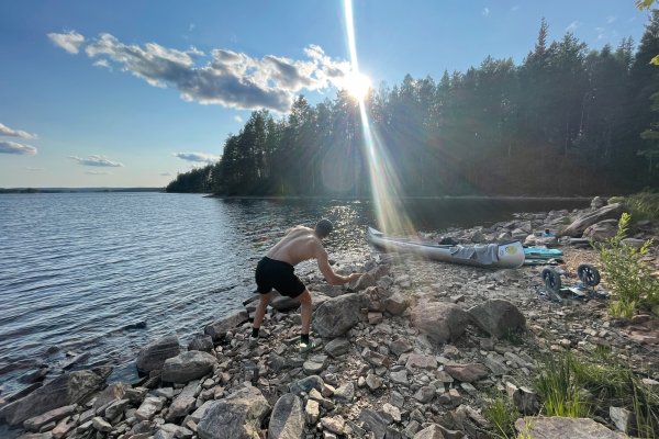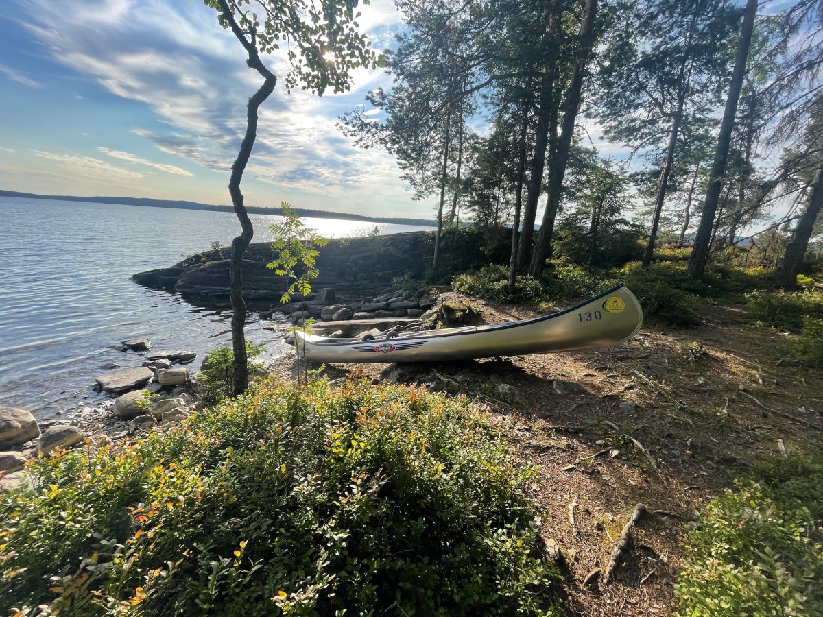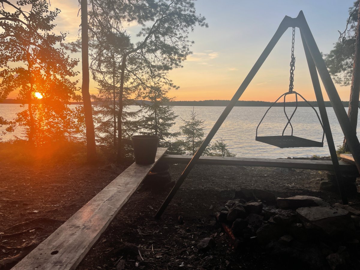 Da wir uns nach einer Nacht noch nicht vom DANO Nr. 12 trennen konnten, war am nächsten Tag eine größere Paddelstrecke nötig. Mit geschmierten Broten machten wir uns auf den Weg von DANO Nr. 12 in Richtung Ausgangspunkt im Norden vom Övre Gla (Entfernung ca. 10 km Luftlinie). Kurz vor dem Ziel trafen wir auf eine mit uns gestartete Gruppe, sodass wir uns kurzerhand entschieden, bei ihnen unser Zelt aufzubauen und uns das Camp zu teilen. Gemeinsam verbrachten wir einen geselligen Abend vor dem Lagerfeuer und aßen reichlich Stockbrot.