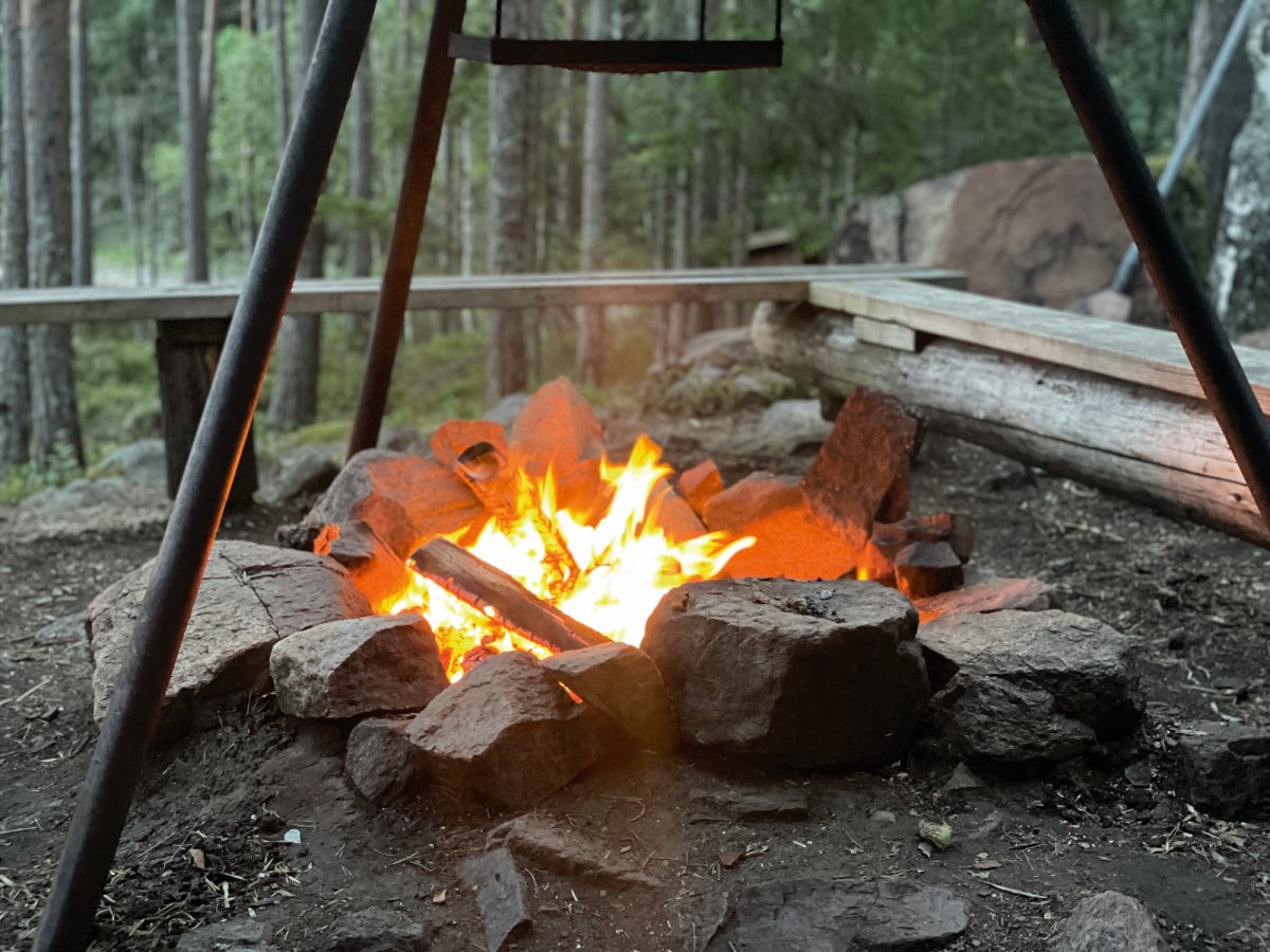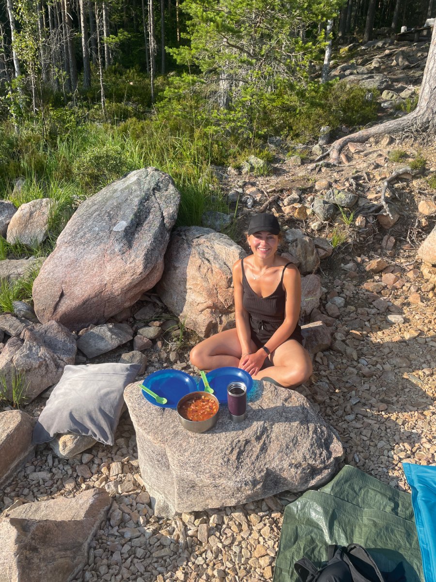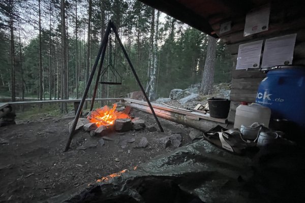 Mit nun ausreichend Sonnencreme bewaffnet beendeten wir die erste Fußetappe und setzten in den Stora Gla über. Größerer See, mehr Wind und noch beeindruckender als der Övre Gla. Unser Ziel war es heute, eine der begehrten Windschutzhütten zu ergattern. Auch hier ging es mit einem kurzen Badestop weiter die Westküste entlang, bis zum DANO Nr. 8. Wir richteten uns ein, machten ein Feuer, suchten einen geeigneten Platz für unsere Hängematte und verweilten gleich zwei Nächte an diesem wunderschönen Ort. Den paddelfreien Tag nutzten wir zum Blaubeeren sammeln und testen einige Rezepte wie z.B den Apfelkuchen sowie das eigene Stockbrot aus dem Outdoor-Kochbuch von scandtrack. Vielleicht habt ihr selbst schonmal eine Nacht unter freiem Himmel verbracht oder werdet selber mal eine Nacht in einem DANO verbringen – Die Erfahrung ist abenteuerlich und die erste Nacht war wirklich aufregend. Probiert es doch einfach mal aus…