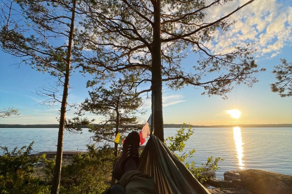 An diesem Morgen hatten wir besseres Glück mit dem Wetter und sind alles erstmal geschmeidig angegangen. Wir hatten vor Richtung Foxen zurückzurudern da wir noch ins Dalsland wollten. Dieser Seitenarm in Verbindung mit der Sonne war einfach verwunschen und traumhaft schön. Wir waren sicher in der Nähe von Lennartsfors kein Dano zubekommen da wir erst Sonntag hatten aber wir sollten uns hart täuschen. Am Foxen angekommen schauten wir auf die Karte und steuerten einfach eine Insel mit Dano an wo eine kleine etwas verfallenen Hütte steht. Dort angelandet sind wir erstmal losgelaufen, um auf die rechte Anhöhe der Insel zu gelangen. Als wir hinter der Bucht das Dano erblickten welches komplett verlassen war, schauten wir uns an und rannten zu den Kanus. Auf dem Wasser zurück ruderten wir als würden wir um unser Leben rudern und ich fühlte mich wie bei Capture the Flag. Dort angelandet und ich bin ich erstmal offiziell abgeschmiert so ein Traum war dieser Ort. Diese Insel hatte wirklich alles. Einen Kiesstrand, Sandstrand eine Bucht, ausreichend Platz und unglaubliche Ecken zum Aufhängen der Hängematte. Dano 17 ist mit Abstand einer der schönsten Orte, den wir zwei auf dem Foxen in diesen zwei Wochen erleben durften.