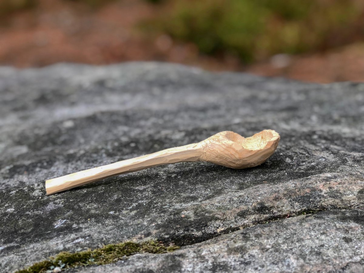 Die Sonne zeigte sich nun auch in Ihrer vollen Pracht und wärmte uns beim Schnitzen ganz schön auf. Jeder von uns versuchte sich an einem Löffel und dafür, dass wir das vorher noch nie gemacht hatten und eigentlich planlos an die Sache rangingen, konnten sich die Ergebnisse sehen lassen.