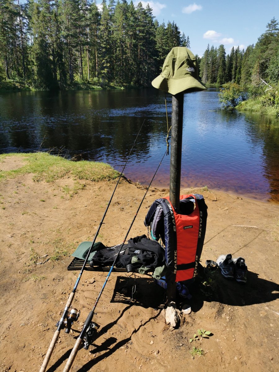Schon nach den ersten Kilometern entdeckten wir ein friedliches Plätzchen an dem wir unser nächtliches Lager aufschlugen. Die Angelrüstung wurde ausgepackt, das erste Lagerfeuer mit dem Feuerstahl entfacht und die Umgebung erkundet. Da die Sonne sich an diesem Tag von ihrer besten Seite zeigte und vom Himmel strahlte, hüpften wir alle auch zum Abkühlen ins Wasser.