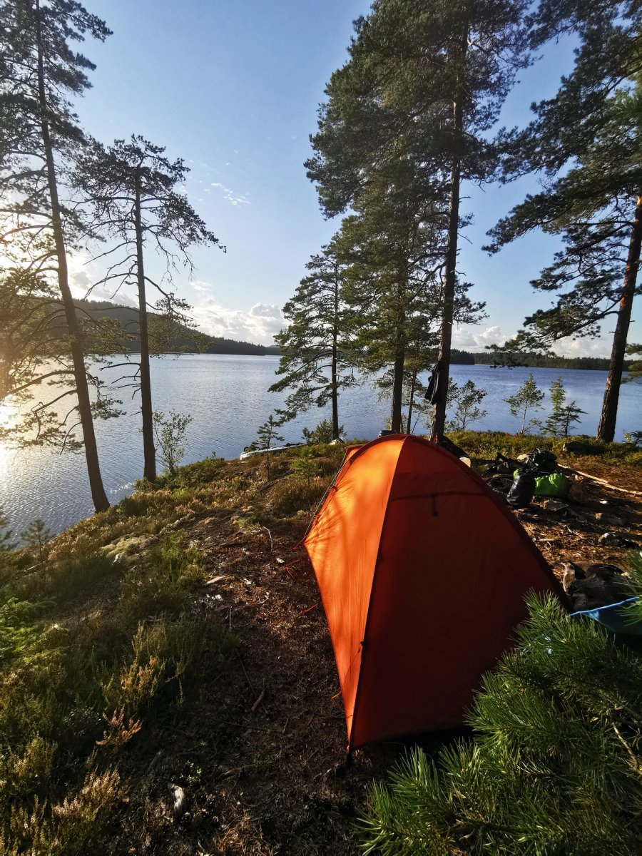 Da wir am ersten Tag nur eine kurze Strecke geschafft hatten, mussten wir in den nächsten Tagen einiges mehr an Kilometern paddeln. Dank unserer Flusskarte konnten wir im Vorfeld schauen, welche Orte für unser tägliches Lager geeignet sein könnten und wir wurden jeden Tag auf ein Neues mit schönen Übernachtungsmöglichkeiten überrascht. Hierbei hatten wir die Wahl zwischen Schutzhütten und Plätzen, die wir uns selbst aussuchen konnten. Jeder Ort, an dem wir übernachteten, besaß etwas Besonderes. So konnte man an einer Stelle ganz viele Blaubeeren pflücken und zum Nachtisch essen, während am nächsten Lagerplatz, die Aussicht auf einen großen See überzeugte.