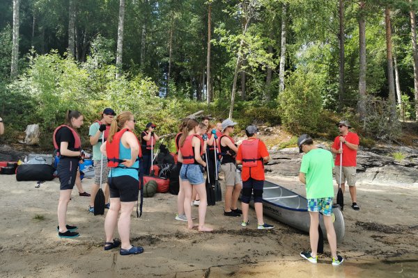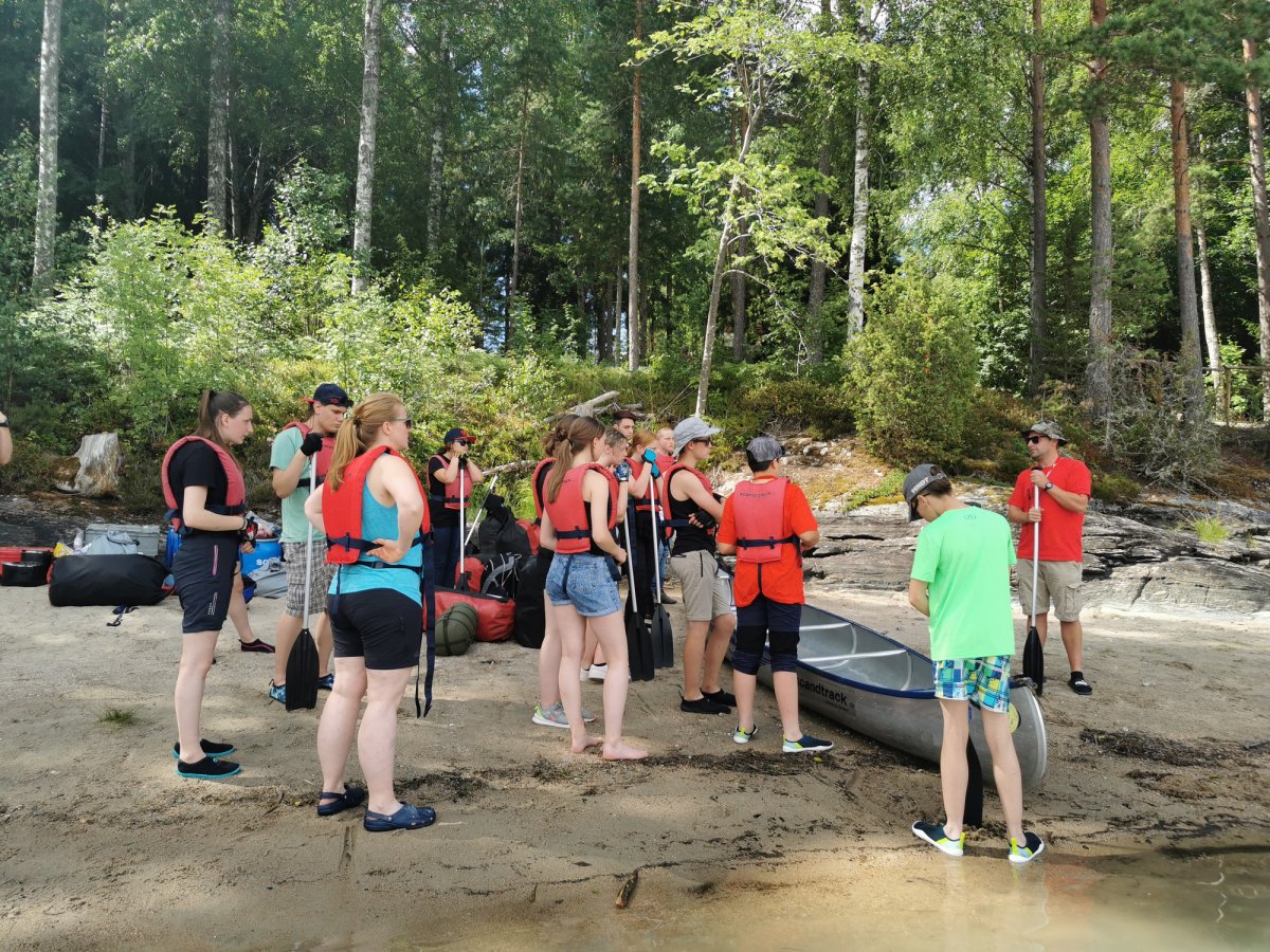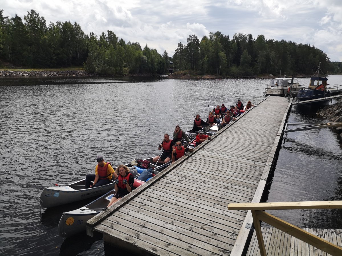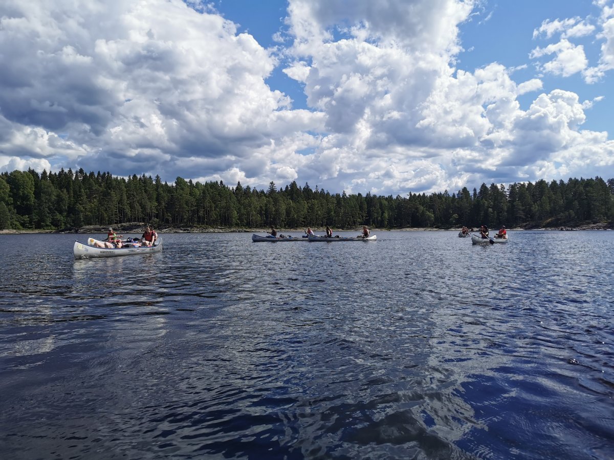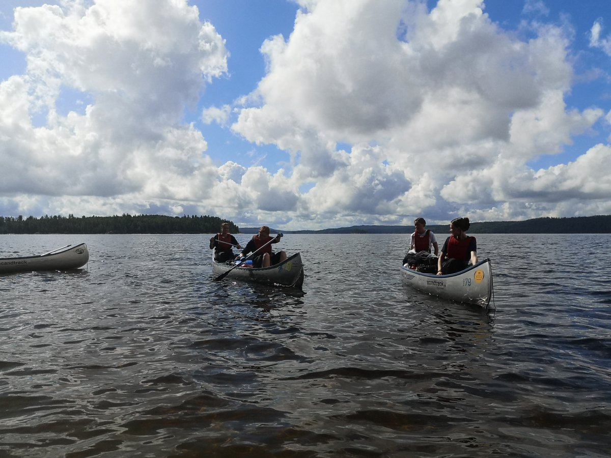 Am 29.07.2022 starteten die Teilnehmer*innen mit ihren Betreuer*innen und ihrem Maskottchen „Noodles“ mit Rucksack, Schlafsack und Isomatte von Gerolstein mit Kleinbussen nach Köln, von dort aus ging es mit einem Reisebus über Puttgarden nach Lennartsfors (Dalsland/Nordmarken) in Schweden. Nach der Ankunft im Basiscamp wurde die Gruppe mit Kanus, Zeltmaterial, Küchenutensilien, Lebensmittel und Kartenmaterial ausgestattet. Nach einer kleinen Kanueinweisung ging es dann 8 Tage auf eigene Faust durch die wunderschöne Fluss- und Seenlandschaft von Dalsland/Nordmarken. Nun hieß es für die Jugendlichen aus der Vulkaneifel fortbewegen auf dem Wasser nur mit der eigenen Muskelkraft, Kochen am offenen Feuer, schwimmen im See Foxen und übernachten im Zelt oder unter dem Sternenhimmel Schwedens. Also Natur und Wildnis pur.