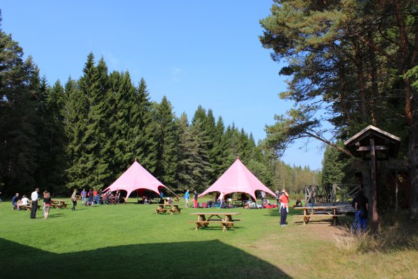 Dieses Jahr hieß es für uns, die Zivilisation hinter uns zulassen und uns auf den Weg ins schwedische Dalsland Nordmarken zu machen. Mit Autan und Mückennetz im Gepäck ging es vom Berliner Ostbahnhof aus los. Zunächst waren wir erleichtert in einem modernen Reisebus zu sitzen. Während der Nacht kam es dann aber trotz bequemer Sitze zu einigen eingeschlafenen Körperteilen. Nach dieser sehr langen, 17 stündigen Busfahrt, mit zwei Fährüberfahrten, konnten wir dann endlich die ersten Blicke auf die wunderschönen schwedischen Seen werfen. Gegen Mittag trafen wir erschöpft aber erleichtert im Basiscamp ein und wurden sogleich begrüßt. Zur Stärkung gab es für jeden einen Hot Dog. Leider gab es für die Vegetarier unter uns nur ein Schmelzkäse Brötchen. Schwamm drüber.