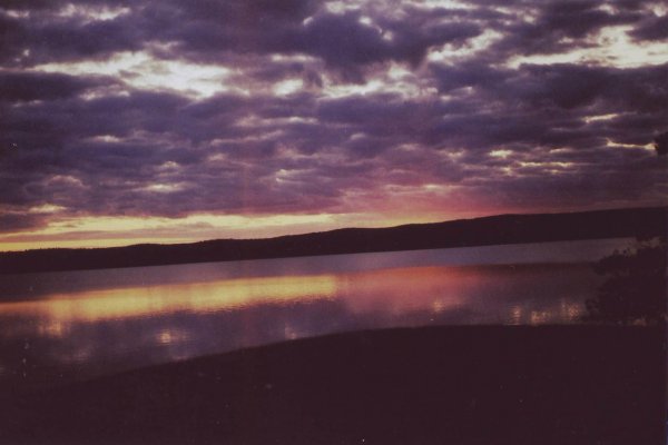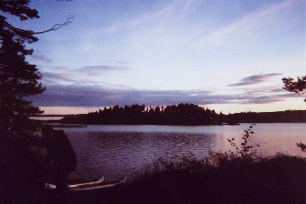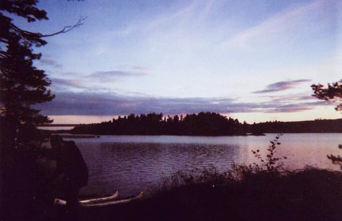 Da es bald dämmert und die Sonne noch so wunderbar scheint, nutze ich die Wartezeit um noch einmal schwimmen zu gehen, da entdecke ich auch schon das Kanu der beiden Jungs am Horizont.