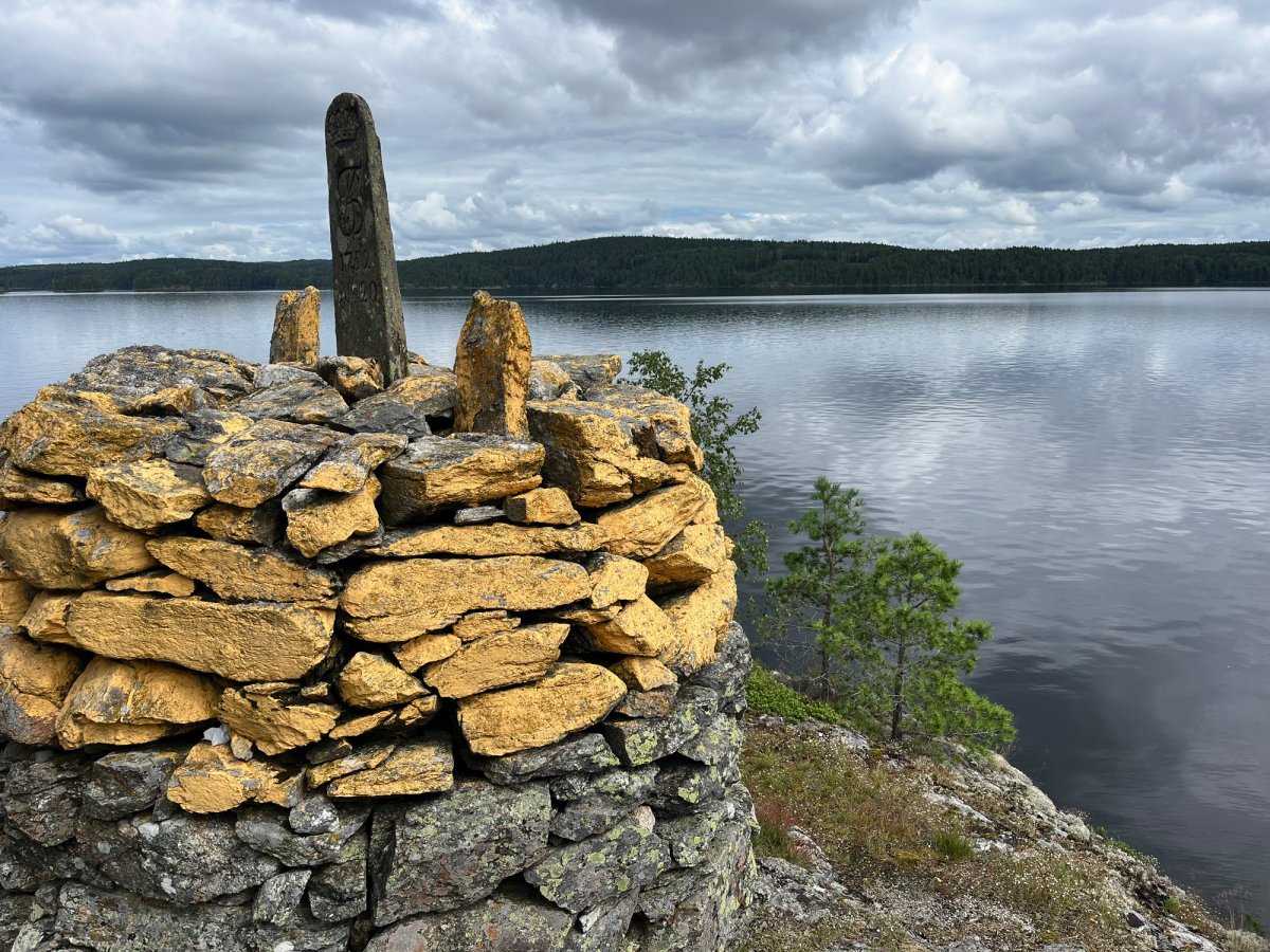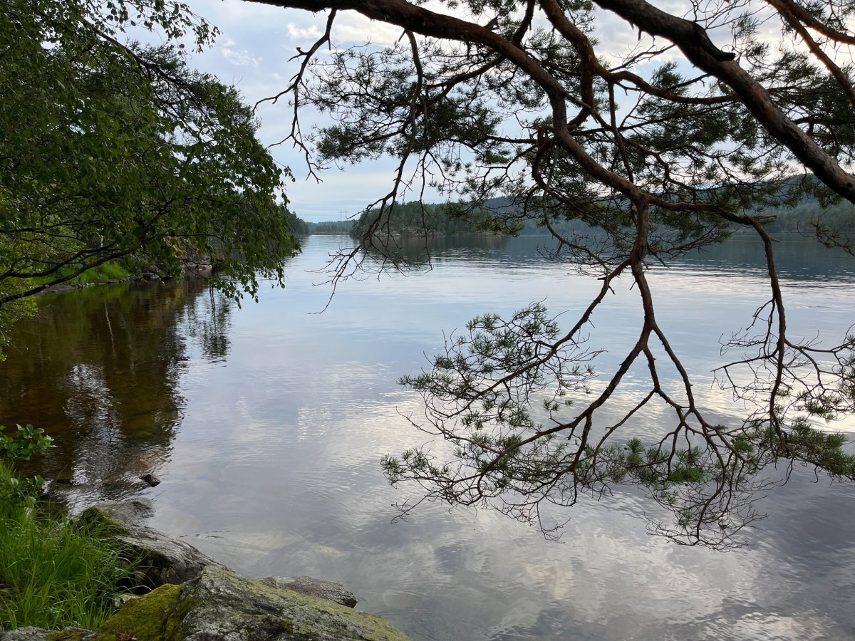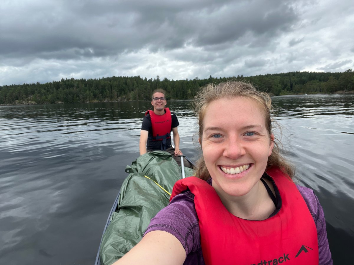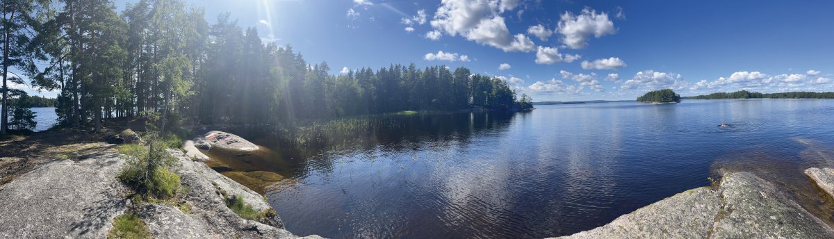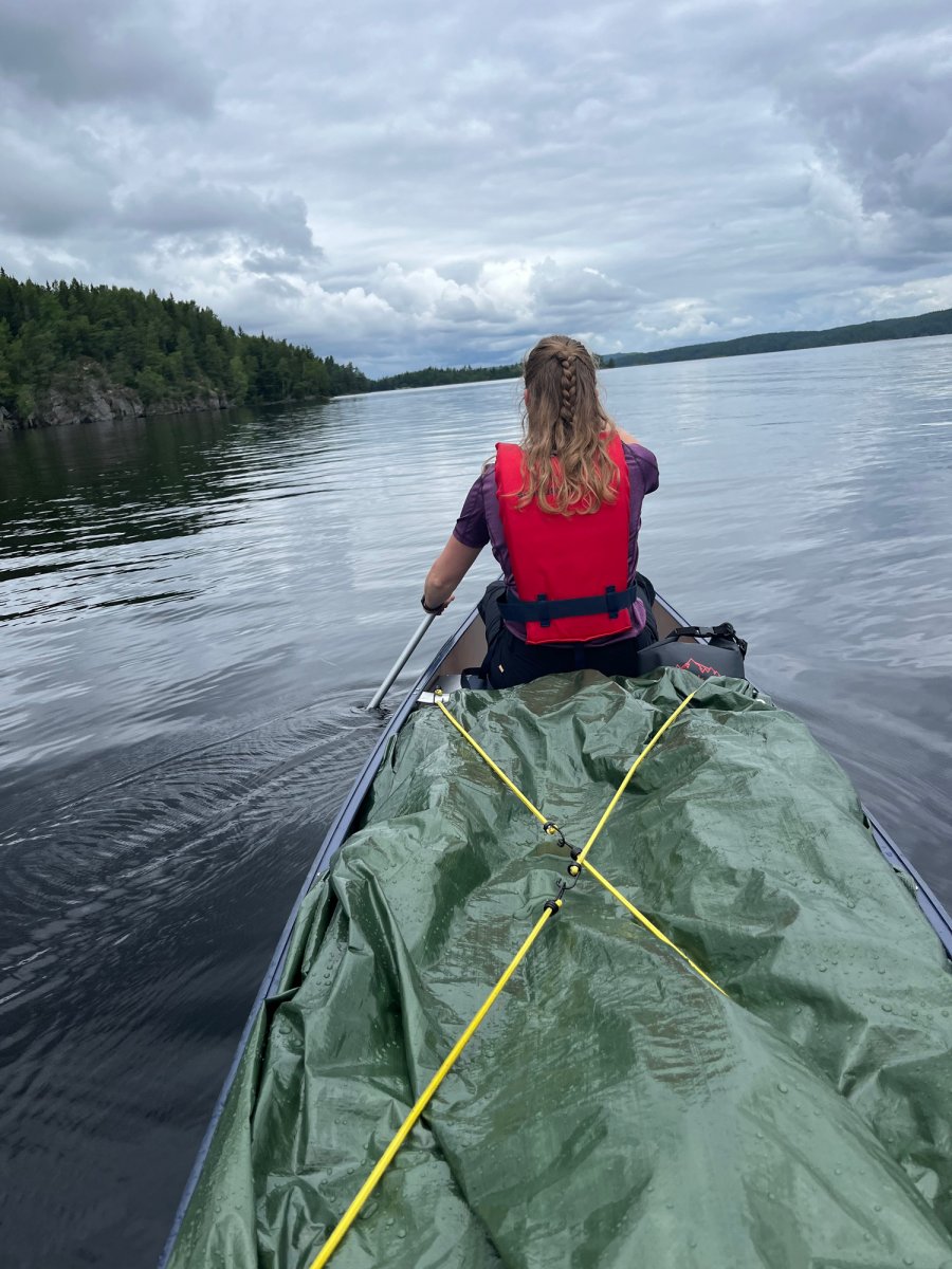 Wir glaubten bald nicht mehr daran, einen schönen Platz zu finden. Bei einer kurzfristigen Pause wurden wir dann aber doch fündig - also packten wir schnell das Kanu aus und sicherten es, bevor wir unser Lager aufbauten.Als das Zelt endlich stand, kam die Sonne zum Vorschein, nur um einige Minuten später wieder unter einer dicken Wolkendecke zu verschwinden. Den darauffolgenden Regen konnten wir zum Glück im Zelt abwarten und anschließend, nachdem die Sonne wieder schien, kochen. Jetzt sitzen wir auf unserer Privat-Stein-Terasse mit Seeblick und genießen bei ein paar Spielen wieder die Abendsonne. Gleich gibt es noch Schogetten :)