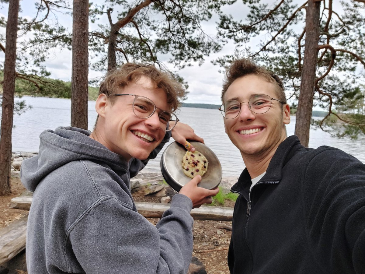 Tag 6 begann für uns mit Pancakes und den gepflückten Heidelbeeren vom Vortag. Trotz der anfänglichen Schwierigkeiten, die Flamme auf perfekte Größe zu bringen, gelang es und zum Ende hin recht gut. Außerdem was es ein ganz besonderes Gefühl, Pancakes mitten im Wald zuzubereiten und zu essen.