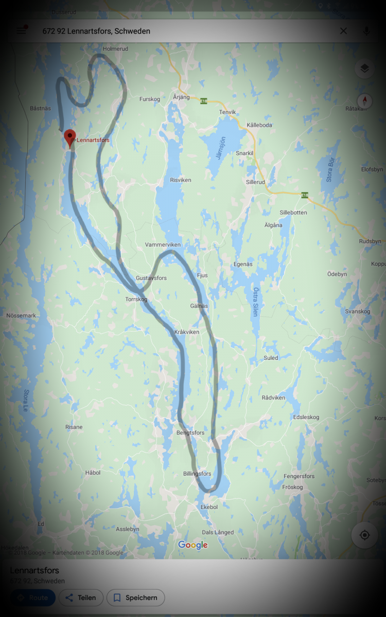 Gestärkt vom Mittagssnack und dem leckeren Eis geht es nun weiter Richtung Laxsjön. Diesmal mussten wir ziemlich lange umtragen, bzw. umfahren. Aber irgendwie ist das auch witzig. Wer sein Boot liebt, der schiebt. Angekommen auf dem See hatten wir vor einen Rastplatz zu suchen. Wir waren schon ziemlich lang unterwegs. Dano 48 war unser Ziel, dort abgekommen war es circa 18:00. Leider hat es uns dort gar nicht gefallen. Weder die Hütte noch die Halbinsel schien schön. Deshalb haben wir beschlossen weiter zufahren. Uns ging es noch gut (lag vermutlich an den Rieseneiskugeln) und deshalb haben wir beschlossen zurück auf den Lelang zu fahren. 18:00 und nur noch 3-mal mal umtragen. Schien machen und auch ein bisschen bekloppt. Auf dem Läxjön war es wirklich schön. Wir haben Greifvögel gesehen aber irgendwie war es, wie soll man sagen. Zu viel Zivilisation. Mit Sicherheit nicht weiter schlimm, nur war in Bengtsfors ein großes Sägewerk was unfassbar laut war. Also weiter geht’s. Wir haben einmal umgetragen, waren dann oben und wussten gar nicht wo wir wieder auf den Dalslandkanal kommen sollten. Als wir endlich oben waren- tadaaaaa- diese Schleuse ist auf. Die hätte man nutzen können. Ein Stockwerkweiter oben. Wieder eine Schleuse und ein „Umtragen verboten“- Schild. Da kommt man sich vielleicht blöd vor. Wir waren wie eingekeseelt von Schleusen, aber da bleiben konnte man auch nicht. Es Roch zum einen nach Klärwerk und zum anderen war es ein Wohngebiet… also mussten wir irgendwie zum nächsten Abschnitt. Wir haben beschlossen einen weg parallel zu Schleuse hoch zu gehen, Der Berg war recht steil und Matthias hat das Kanu hochgeschoben und ale wir oben waren. *Überraschung* Durchgang gesperrt. Wir wussten nicht ob wir lachen oder weinen sollten (und ich dachte, das wäre super weil wir genau bis zum anderen See vorkommen-laut Google) und dann gibt es keinen offiziellen Umtrageweg. Also was machen wir? Wir sind trotzdem da lang. Es war ja nun auch schon später. Uns kamen Bauarbeiter entegegen. Die spinnen die Schweden, um solche Uhrzeite sieht man bei uns auf Baustellen niemanden. Wir sind vorsichtig an Ihnen vorbei. Sie grinsen uns mega an und zeigen uns einen Daumen. (International für: Alles gut und euch einen schönen Abend)