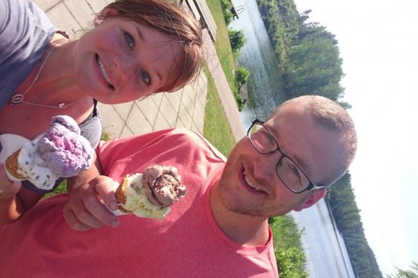 So ging es also weiter auf dem Svärdang. Gemütlich tümpelt man da vor sich und man sieht keine Menschenseele. Ab und zu sieht man mal ein paar Vögel, Fischis und ansonsten ist es eine Totenstille. Dadurch das der Seitenarm sehr schmal ist, hat man keine Wellen, wie es mal auf dem Lelang oder Foxen passieren kann. Es ließ sich einfach traumhaft bis Skapafors paddeln. Dort mussten wir umtragen. Wir nutzen das Abschnallen gleich zum Picknicken. Dort gab es Sitzgelegenheiten mit einem Tisch. Unfassbar wie schön es ist an einem Tisch zu essen. Beim Umtragen haben wir es immer so gemacht, dass ich geschaut habe wo es lang geht und Matthias ist beim Boot geblieben. In der Richtung waren die Umtragewege nur so mittelgut ausgeschildert. Aber hey mit Google schafft man alles. Und nun komme ich zu meinem persönlichen Highlight in diesem Urlaub. Eigentlich braucht man für die Reise keinen Cent, weil das was man von Scantrack bekommt langt vollkommen aus und man kommt (außer man legt es darauf an) an keinem Supermarkt vorbei. Nun laufe ich den Weg ab (diesmal eine ganze Ecke. Matthias dachte bestimmt ich bin schon mal nach Hause gelaufen) und auf dem Rückweg entdecke ich einen Kiosk! Ein kleiner Laden mit zwei hübschen Schwedinnen. Leider ist mein Schwedisch ein bisschen eingerostet. Aber Gott sei Dank gibt es Bilder von Kugeleis! Und die Geschmacksrichtungen: Blåbär, Citron, Chloklad und Daim sind auch ohne fließendes Schwedisch verständlich. Wie glücklich doch ein Eis in der Hitze machen kann: