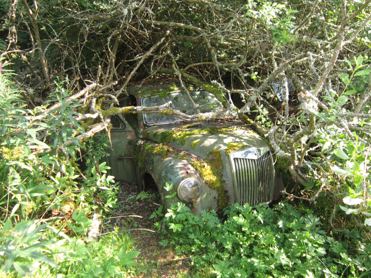 Am nächsten Tag, früh aufgestanden, gab es nochmal Blaubeerpancakes zum Frühstück. Wieder auf dem See kamen wir relativ schnell voran und konnten schon am frühen Nachmittag wieder anlegen. Später fuhren wir dann zum gegenüber liegenden Festland, um einen Autofriedhof zu besichtigen. Jedoch wurden wir zuerst von Himbeersträuchern aufgehalten, an denen sehr leckere Himbeeren hingen. Danach konnten wir uns die bis zu 50 Jahre alten Autos anschauen, aus denen teilweise schon Bäume wuchsen.